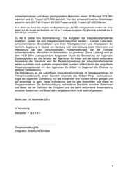 Ad 4: Was geschieht in Zukunft mit Inklusionsfirmen und damit mit den Arbeitsplätzen behinderter Menschen, die vor der Pauschalisierung mehr als 30% Förderung erhalten haben bzw. wie lange wird der Bestandsschutz gelten? Wie steht der Senat zur Einschätzung des Fragestellers, dass die theoriereduzierte Ausbildung eher Menschen mit dem Förderschwerpunkt emotional-soziale Entwicklung bzw. Lernbehinderung als tatsächlich gestige Behinderungen betrifft? Zu Ad 4.: Zum ersten Teil der Frage verweist der Senat auf die Antwort zu Frage 6 der Schriftlichen Anfrage 18/16639. In Ermangelung valider Daten kann der Senat die Einschätzung des Fragestellers, dass die theoriereduzierte Ausbildung eher Menschen mit dem Förderschwerpunkt emotional-soziale Entwicklung bzw. Lernbehinderung als tatsächlich geistige Behinderungen betrifft, weder bestätigen noch dementieren. Ad 5: Durch welche Maßnahmen will Berlin die Anzahl der Inklusionsfirmen steigern? Welche Strategien entwickelt Berlin zur Beseitigung der offensichtlichen Benachteiligung von Frauen mit Behinderung auf dem Arbeitsmarkt? Zu Ad 5.: Der Senat hat bereits in der Antwort auf die Frage 4 der Schriftlichen Anfrage 18/16639 die attraktiven Förderbedingungen für Inklusionsbetriebe in Berlin skizziert. Die Zahl der Inklusionsbetriebe hängt jedoch davon ab, wie viele Unternehmerinnen und Unternehmer die Bereitschaft besitzen, einen solchen Betrieb zu gründen und entsprechende Anträge beim Integrationsamt Berlin zu stellen. Über die attraktiven Förderbedingungen hinaus stellt das Integrationsamt unbürokratische und schnelle Förderverfahren bereit, die gewährleisten, dass sowohl in finanzieller Hinsicht als auch im Hinblick auf die begleitende Beratungsleistung den Betrieben ein zuverlässiger und kompetenter Partner zur Seite steht. Die vom Senat im Rahmen der Arbeits- und Ausbildungsförderung finanzierten Unterstützungsangebote sind grundsätzlich für alle Geschlechter offen sowie für Menschen mit Behinderung. Spezielle Maßnahmen zur Unterstützung von Frauen mit Behinderung werden nicht vorgehalten. Inwieweit tatsächlich eine „offensichtliche Benachteiligung von Frauen mit Behinderung auf dem Arbeitsmarkt“ vorliegt, ist aufgrund der eingeschränkten Datenlage schwer zu beurteilen und bedarf einer differenzierten Betrachtung. In Inklusionsbetrieben konnte z. B. alleine von 2016 zu 2017 der Anteil der Frauen sowohl an den Beschäftigten insgesamt als auch an den schwerbehinderten Beschäftigten leicht erhöht werden. Menschen mit Behinderungen haben – unabhängig vom Geschlecht – erhebliche Schwierigkeiten bei der Integration in den allgemeinen Arbeitsmarkt. Die Erwerbstätigenquote von schwerbehinderten Menschen im Alter von 15 bis unter 65 Jahren liegt deutlich unter der Erwerbstätigenquote der Bevölkerung insgesamt. Positiv zu verzeichnen ist, dass die Beschäftigung von Menschen mit Behinderungen auf dem allgemeinen Arbeitsmarkt in den vergangenen Jahren zugenommen hat. Gemäß der Berichterstattung der Bundesagentur für Arbeit (vgl. Statistik der Bundesagentur für Arbeit, Berichte: Blickpunkt Arbeitsmarkt – Situation schwerbehinderter Menschen, Nürnberg, Mai 2018 https://statistik.arbeitsagentur.de/Statischer-Content/Arbeitsmarkt- berichte/Personengruppen/generische-Publikationen/Brosch) waren von den 7,6 Millionen schwerbehinderten Menschen im Jahr 2015 in Deutschland gut zwei von fünf (43 Prozent bzw. 3,3 Millionen) im erwerbsfähigen Alter (15 bis unter 65 Jahre). Davon war fast die Hälfte Frauen (47 Prozent bzw. 1,6 Millionen). Von den 2016 bei Arbeitgeberinnen und Arbeitgebern mit mindestens 20 Arbeitsplätzen beschäftigten 3