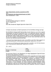 Senatsverwaltung für Wirtschaft, Energie und Betriebe Herrn Abgeordneten Joschka Langenbrinck (SPD) über den Präsidenten des Abgeordnetenhauses von Berlin über Senatskanzlei - G Sen - Antwort auf die Schriftliche Anfrage Nr. 18/20 612 vom 15. August 2019 über Müll, Müll, Sondermüll: Illegaler Sperrmüll in Berlin 2018 ------------------------------------------------------------------------------------------------------------------------- Im Namen des Senats von Berlin beantworte ich Ihre Schriftliche Anfrage wie folgt: Die Schriftliche Anfrage betrifft Sachverhalte, die der Senat nur zum Teil in eigener Zuständigkeit und Kenntnis beantworten kann. Er ist gleichwohl bemüht, Ihnen eine Antwort auf Ihre Anfrage zukommen zu lassen und hat daher die Berliner Stadtreini- gungsbetriebe (BSR) Anstalt öffentlichen Rechts um eine Stellungnahme gebeten, die von dort in eigener Verantwortung erstellt und dem Senat übermittelt wurde. Sie wurde bei der Beantwortung berücksichtigt. 1. Wie viele Tonnen illegaler Sperrmüll wurden von den BSR im Jahr 2018 in Berlin insgesamt ent- sorgt (bitte Beantwortung in Fortschreibung der entsprechenden Tabelle der Drs. 18/14787)? 2. Wie teuer war die Beseitigung des illegalen Sperrmülls für die BSR im Jahr 2018 (bitte Beantwor- tung in Fortschreibung der entsprechenden Tabelle der Drs. 18/14787)? Zu 1. und 2.: 2018 Mengen in Kubikmeter 31.900 Kosten 4,6 Mio. € Die genannten Werte für die Beseitigung von illegal abgelagertem Sperrmüll bezie- hen sich auf das gesamte Land Berlin. Der überproportionale Anstieg der Kubikmeter-Zahlen gegenüber den Kosten basiert größtenteils auf einer neuen Berechnungsweise im Jahr 2017: Diese berücksichtigt, dass illegale Müllablagerungen – überwiegend in Neukölln und teilweise in Tempel- hof-Schöneberg – auch mithilfe von sog. Pressmüllfahrzeugen eingesammelt wer- den. Solche Pressmüllfahrzeuge verdichten während des Ladevorgangs das Sperr- müllvolumen um das Dreifache. Um diesen dreifachen Verdichtungsfaktor wieder auszugleichen, wird bei der Berechnung der illegalen Müllmenge nunmehr der Teil des gepressten Müllvolumens mit dem Faktor drei multipliziert. Das führt im Ergebnis
