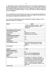 -4- schutzes für die Sachbereiche Abfallwirtschaft, Immissionsschutz, Naturschutz und Landschaftspflege, Forstwesen und Grün- und Erholungsanlagen neu gefasst. Der Tatbestand der illegalen Sperrmüllablagerung ist hierbei unter dem Sachbereich Ab- fallwirtschaft erfasst. Im Sinne des „Aktionsprogramms Sauberes Berlin: Für eine attraktive, saubere und lebenswerte Hauptstadt“ (Drs. 18/1397) und der „Gesamtstrategie Saubere Stadt“ (Drs. 18/0700 - II.B.93) wurden die Regelverwarn- und Regelbußgelder - in Anleh- nung an die Bußgeldkataloge anderer Bundesländer - insgesamt auf ein effektives Maß angehoben. Die Neufassung wird derzeit im Rat der Bürgermeister beraten und im Anschluss dem Senat zur endgültigen Beschlussfassung vorgelegt. 5. Wann und in welchem Rahmen werden die Dienstzeiten der Mitarbeiter/innen der bezirklichen Ord- nungsämter (OA) und der Allgemeinen Ordnungsdienste in den Abendstunden verlängert und wie ge- staltet sich die Einigung mit dem Hauptpersonalrat konkret aus? Zu 5.: Am 9. August 2019 hat die Senatsverwaltung für Finanzen im Einvernehmen mit der Senatsverwaltung für Inneres und Sport mit dem Hauptpersonalrat die Rah- mendienstvereinbarung „Rahmenarbeitszeitregelung für die Außendienstkräfte der bezirklichen Ordnungsämter“ abgeschlossen. Die Dienstvereinbarung ist damit am 9. August 2019 in Kraft getreten. Die Dienstvereinbarung ersetzt die „Rahmenarbeitszeitregelung für die Außen- dienstmitarbeiterinnen und -mitarbeiter der bezirklichen Ordnungsämter (Allgemeiner Ordnungsdienst und Überwachung der Parkraumbewirtschaftungsgebiete)“, die die Senatsverwaltung für Inneres und Sport und der Hauptpersonalrat im Jahr 2010 ver- einbart hatten. Der Zeitrahmen, in dem die Arbeitszeiten der Dienstkräfte des Allgemeinen Ord- nungsdienstes liegen können, liegt nun an allen Tagen bei 06:00 bis 24:00 Uhr. Zu- vor hatte diese Rahmenarbeitszeit an Freitagen und Samstagen außer an Feiertagen bereits bei 06:00 bis 24:00 Uhr, dagegen an den übrigen Tagen bei 06:00 bis 22:00 Uhr gelegen. Inhaltlich unverändert aber redaktionell eindeutiger formuliert enthält die Dienstver- einbarung weiterhin die Regelung, dass auf freiwilliger Basis mit den örtlichen Perso- nalräten vom oben genannten Arbeitszeitrahmen abweichende Zeiten und Einsätze vereinbart werden dürfen. Die Entscheidungen über die Nutzung des Arbeitszeitrahmens treffen die einzelnen Bezirke auf der Basis ihrer örtlichen Gegebenheiten. 6. Wie viele Mitarbeiterinnen und Mitarbeiter der bezirklichen AOD werden in den einzelnen Bezirken jeweils nach 18 Uhr im Einsatz sein? Zu 6.: Da dem Senat keine eigenen Erkenntnisse vorliegen, werden die Zulieferun- gen der jeweiligen Bezirke wieder gegeben: