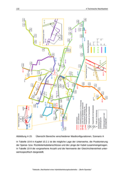 132 Abbildung 4-15: 4 Technische Machbarkeit Übersicht Bereiche verschiedener Mastkonfigurationen, Szenario A In Tabelle 10-8 in Kapitel 10.2.1 ist die mögliche Lage der Unterwerke, die Positionierung der Speise- bzw. Rückleiterkabelanschlüsse und die Länge der Kabel zusammengetragen. In Tabelle 10-9 die vorgesehene Anzahl und die Nennwerte der Gleichrichtereinheit unter- werksspezifisch dargestellt. Teilstudie „Machbarkeit eines Hybridoberleitungsbusbetriebs – „Berlin-Spandau“