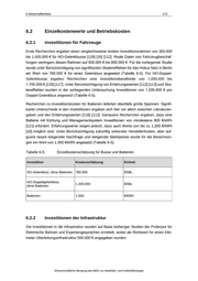 6 Wirtschaftlichkeit 173 6.2 Einzelkostenwerte und Betriebskosten 6.2.1 Investitionen für Fahrzeuge Erste Recherchen ergaben einen vergleichsweise breiten Investitionsrahmen von 300.000 bis 1.000.000 € für HO-Gelenkbusse [126] [16] [112]. Reale Daten von Fahrzeugbeschaf- fungen verringern diesen Rahmen auf 500.000 € bis 800.000 €. Für die vorliegende Studie wurde unter Berücksichtigung von signifikanten Skaleneffekten für das Hobus Netz in Berlin ein Wert von 760.000 € für einen Gelenkbus angesetzt (Tabelle 6-5). Für HO-Doppel- Gelenkbusse ergaben Recherchen eine Investitionsbandbreite von 1.000.000 bis 1.700.000 € [126] [117]. Unter Berücksichtigung von Erfahrungswerten [112] [113] und Ska- leneffekten wurden in der vorliegenden Untersuchung Investitionen von 1.200.000 € pro Doppel-Gelenkbus angesetzt (Tabelle 6-5). Recherchen zu Investitionskosten für Batterien lieferten ebenfalls große Spannen. Signifi- kante Unterschiede in den Investitionen ergaben sich hier vor allem zwischen Literaturan- gaben und den Erfahrungswerten [116] [112]. Genauere Recherchen ergaben, dass eine Batterie mit Kühlung und Managementsystem Investitionen von mindestens 800 €/kWh [121] erfordert. Erfahrungswerte zeigen jedoch, dass auch Werte von bis zu 1.200 €/kWh [16] möglich sind. Unter Berücksichtigung zukünftig sinkender Herstellerkosten, aber auf- grund rasant steigender Nachfrage und steigender Marktpreise wurde für die Berechnun- gen ein Wert von 1.000 €/kWh angesetzt (Tabelle 6-5). Tabelle 6-5: Einzelkostenschätzung für Busse und Batterien Investition Kostenschätzung Einheit HO-Gelenkbus, ohne Batterien 760.000 €/Stk. HO-Doppelgelenkbus, ohne Batterien 1.200.000 €/Stk. Batterien 1.000 €/kWh 6.2.2 Investitionen der Infrastruktur Die Investitionen in die Infrastruktur wurden auf Basis bisheriger Studien der Professur für Elektrische Bahnen und Expertengesprächen ermittelt, wobei als Richtwert für einen Kilo- meter Oberleitungsinfrastruktur 500.000 € angegeben wurden. Wissenschaftliche Beratung des BMVI zur Mobilitäts- und Kraftstoffstrategie