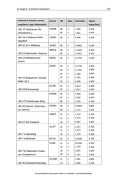 10 Anlage A –Technische Machbarkeit Unterwerk Nummer sowie 295 Kürzel AB Spur Kilometer ungefähre Lage (Haltestelle) Kabel- länge [km] UW 07 Biberburg BIBG 01 h 7,596 0,100 UW 08 Gatower Str. (Heer- str.) GAHE 01 d 9,818 0,100 01 h 9,558 0,100 01 h 9,654 0,100 03 h 11,022 0,100 03 h 11,198 0,100 01 h 12,179 0,400 01 r 12,244 0,400 04 h 10,217 0,100 04 h 10,340 0,100 07 h 0,091 0,400 07 r 0,380 0,700 10 h 0,349 0,700 11 h 0,487 0,900 19 h 1,806 0,300 10 h 1,092 0,600 10 h 1,093 0,600 01 h 16,638 1,400 10 h 2,279 0,900 10 h 2,842 1,500 02 h 2,002 0,100 02 r 2,941 0,900 03 h 1,704 0,100 03 h 1,705 0,100 04 h 0,880 0,900 03 h 2,837 0,100 03 h 2,838 0,100 26 h 0,601 0,500 SMNO 03 h 4,058 0,100 SHST 03 h 5,952 0,100 03 h 5,953 0,100 03 h 7,121 0,100 03 h 7,122 0,100 UW 09 Brunsbüttler Damm (Ruhlebener Str.) UW 10 Falkenseer Platz BDRU FAPL HVLS UW 11 Havelschanze RAUC UW 12 Rauchstraße SEEK UW 14 Seekorso SLUE UW 16 Schlüterstr. KFKA UW 17 Kaiser-Friedrich-Str. (Kantstr.) UW 18 S Messe Nord (ICC) UW 19 S Heerstraße UW 20 Flatowallee (Olympi- astadion) FLTW Wissenschaftliche Beratung des BMVI zur Mobilitäts- und Kraftstoffstrategie