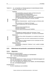 30 3 Grundlagen Tabelle 3-6: Vor- und Nachteile von Oberleitungsbussen mit abschnittsweiser Nachla- dung unter Fahrdraht, nach [75] Technisch: Vorteile Hohe bereitstellbare Leistung (für Traktion und Nebenverbraucher) Hoher Wirkungsgrad der Energieübertragung Hohe Drehmomente über den gesamten Drehzahlbereich Möglichkeit zur Rekuperation von Bremsenergie Lebensdauerfreundliche Batterie-Ladekonzepte, ohne Schnellladung mög- lich - unter Oberleitung mit geringeren Leistungen nachladbar Ökonomisch: Reduzierte Infrastrukturkosten – speziell Kreuzungen und Weichen entfal- len Hohe Lebensdauer von Anlagen und Fahrzeugen Geringer Energieverbrauch der Fahrzeuge (Rekuperation) Ökologisch: Reduzierte lokale Schadstoffemission Reduzierte Lärmemission Reduzierte optische Beeinflussung des Stadtbildes Technisch: Notwendigkeit der doppelten Isolation des Fahrzeuges Kosten Zusätzlicher Bedarf an Regelungstechnik – auf Kosten der Zuverlässigkeit Nachteile Ökonomisch: Gegenüber Obus erhöhte Fahrzeugkosten und zusätzliche Kosten für die Batterie Reduzierter aber immer noch hoher Investitionsaufwand für die Infrastruk- turanlagen Die Lebensdauer der Batterie entspricht nicht der Lebensdauer des Fahr- zeugs – Wechsel notwendig Ökologisch/Optisch: Verschlechterter „ökologischer Fußabdruck“ durch zusätzlich benötigte Komponenten 3.2.5 Elektrobusse mit punktueller, automatisierter Nachladung 3.2.5.1 Allgemeines Wirkungsgrad der Energieversorgung: 0,35 vom Primärenergieträger (Kraftwerk) zur Nachladestation 0,90 … 0,93 für das Übertragungssystem Fahrzeugwirkungsgrad: 0,82; der Wirkungsgrad der E-Traktion wird durch den Batteriewirkungsgrad und durch den Wirkungsgrad des Ladegeräts reduziert 0,75 – 0,70; bei Speisung des Antriebs aus der Batterie, unter Berücksichtigung des Lade- und Entladewirkungsgrads Energieverbrauch: Für 18 m- Gelenkbusse rund 3,0 kWh/km Teilstudie „Machbarkeit eines Hybridoberleitungsbusbetriebs – „Berlin-Spandau“