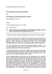 Drucksache 18 / 15 896 Schriftliche Anfrage 18. Wahlperiode Schriftliche Anfrage des Abgeordneten Daniel Wesener (GRÜNE) vom 06. August 2018 (Eingang beim Abgeordnetenhaus am 07. August 2018) zum Thema: Human Remains: Wie geht Berlin mit menschlichen Schädeln und Gebeinen aus kolonialen Sammlungskontexten um? und Antwort vom 22. August 2018 (Eingang beim Abgeordnetenhaus am 23. Aug. 2018) Die Drucksachen des Abgeordnetenhauses sind bei der Kulturbuch-Verlag GmbH zu beziehen. Hausanschrift: Sprosserweg 3, 12351 Berlin-Buckow · Postanschrift: Postfach 47 04 49, 12313 Berlin, Telefon: 6 61 84 84; Telefax: 6 61 78 28.