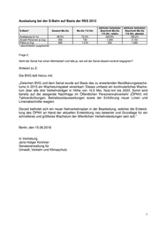 Auslastung bei der S-Bahn auf Basis der RES 2012 stärkster belasteter stärkster belasteter S-Bahn* Gesamt Mo-Do Mo-Do 7-9 Uhr Abschnitt Mo-Do Abschnitt Mo-Do 7-9 Uhr, relativ 7-9 Uhr, absolut Auslastung (in %) 48,5% 72,3% 229,9% 185,2% Anzahl Personen je Zug 466 730 1.269 3.133 Plätze je Zug 960 1.010 552 1.692 * abschnittsfein ausgewertet Frage 2: Sieht der Senat hier einen Mehrbedarf und falls ja, wie will der Senat diesem konkret begegnen? Antwort zu 2: Die BVG teilt hierzu mit: „Zwischen BVG und dem Senat wurde auf Basis des zu erwartenden Bevölkerungswachs- tums in 2015 ein Wachstumspaket vereinbart. Dieses umfasst ein kontinuierliches Wachs- tum über alle drei Verkehrsträger in Höhe von 10,5 Mio. Nutz-km bis 2033. Somit wird bereits auf die steigende Nachfrage im Öffentlichen Personennahverkehr (ÖPNV) mit Taktverdichtungen, Betriebszeitausweitungen sowie der Einführung neuer Linien und Linienabschnitte reagiert. Derzeit befindet sich ein neuer Nahverkehrsplan in der Bearbeitung, welcher die Entwick- lung des ÖPNV an Hand der aktuellen Entwicklung neu bewertet und Grundlage für ein schnelleres und größeres Wachstum der öffentlichen Verkehrsleistungen sein soll.“ Berlin, den 15.06.2018 In Vertretung Jens-Holger Kirchner Senatsverwaltung für Umwelt, Verkehr und Klimaschutz 3