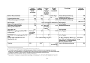 Anzahl entgelt- Kosten- Entgelt- Grundlage Fahrrad- 1 Stellplätze pflichtig frei höhe Stellplätze für Be- (dienstl. Nut- monatlich zung priv. schäftigte Pkw; Schwer- behinderten- plätze etc.) 7 7 Berliner Wasserbetriebe 242 242 / keine Anga- interne Dienstvereinbarung, 166 be ortsüblicher Mietzins Investitionsbank Berlin 156 155 1 40 € privatrechtlicher Mietvertrag 89 IT-Dienstleistungszentrum Berlin 30 19 11 25 € interne Dienstvereinbarung 21 (ab 2015 40) Messe Berlin keine gesonderten Stellplätze für Beschäftigte degewo Aktiengesellschaft 130 / 130 / keine Angabe 97 GEWOBAG Wohnungsbau- 99 99 keine zah- 85 € Betriebsvereinbarung 100 Aktiengesellschaft Berlin lenmäßige 8 Angabe 9 GESOBAU AG 121 / 121 / keine Angabe 106 WBM Wohnungsbaugesellschaft Ber- keine zah- 22 1 50 € keine Angabe 46 lin-Mitte mbH lenmäßige 10 Angabe HOWOGE Wohnungsbaugesellschaft 87 / 87 / keine Angabe 25 mbH 11 STADT UND LAND Wohnbauten- keine zahlenmäßige Angabe im öfftl. geförderten Wohnungs- keine Erhe- Gesellschaft mbH bau Höhe der Stellplatzmiete als bung Kostenmiete; im freifinanzierten Bereich ortsübliche Miete 12 Vivantes 830 830 / 40 € interne Betriebsvereinbarung 994 (für 225 Plät- ze) 7 exklusive (zum Teil entgeltpflichtiger) Dienstparkplätze, Behindertenparkplätze etc. 8 1. Jahr kostenfrei; generell Kostenfrei für Behindertenparkplätze, Personal mit Außenterminen oder festgelegten Servicezeiten 9 weitere Park- und Fahrradstellplätze in unmittelbarer Nähe zu den fünf Service-Centern der Gesellschaft - ohne zahlenmäßige Angabe 10 bei Bedarf kann Stellplatz im eigenen Parkhaus der WBM Grunerstraße kostenpflichtig angemietet werden 11 Beschäftigte können freie Stellplätze / Garagen anmieten als Privatperson 12 davon derzeit 11 Stellplätze für schwerbehinderte Beschäftigte mit Ermäßigung i.H.v. 50 % (20 €); 594 Stellplätze für 1 € pro 24 h 3