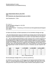 Drucksache 18 / 11 279 Schriftliche Anfrage 18. Wahlperiode Schriftliche Anfrage des Abgeordneten Marcel Luthe (FDP) vom 16. Mai 2017 (Eingang beim Abgeordnetenhaus am 19. Mai 2017) zum Thema: Hawala-"Banken" - Anwendung und Kontrolle des Zahlungsdiensteaufsichtsge- setzes in Berlin und Antwort vom 1. Juni 2017 (Eingang beim Abgeordnetenhaus am 09. Juni 2017) Die Drucksachen des Abgeordnetenhauses sind bei der Kulturbuch-Verlag GmbH zu beziehen. Hausanschrift: Sprosserweg 3, 12351 Berlin-Buckow · Postanschrift: Postfach 47 04 49, 12313 Berlin, Telefon: 6 61 84 84; Telefax: 6 61 78 28.