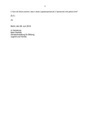 3 5. Kann der Senat zusichern, dass in dieser Legislaturperiode die 3. Sportstunde nicht gekürzt wird? Zu 5.: Ja. Berlin, den 08. Juni 2018 In Vertretung Mark Rackles Senatsverwaltung für Bildung, Jugend und Familie