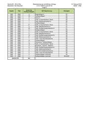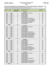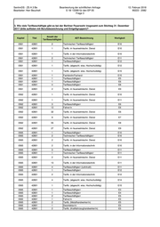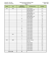 SenInnDS - ZS A 3 Be Beantwortung der schriftlichen Anfrage 13. Februar 2018 Bearbeiter: Herr Beuchelt S 18/ 13399 für den EP 05 90223 - 2082 Frage 3 Anzahl der Kapitel Titel ADT-Bezeichnung Wertigkeit Tarifbeschäftigten 0565 42801 2 Wagenpfleger/in E5 0565 42801 43 Tarifbeschäftigte/r E6 0565 42801 5 Fahrer/in E6 0565 42801 3 Tarifb. im feuerwehrtechn. Dienst E6 0565 42801 1 Tarifb. (Elektromechaniker/in) E6 0565 42801 1 Tarifbeschäftigte/r E7 0565 42801 51 Tarifb. im feuerwehrtechn. Dienst E7 0565 42801 3 Tarifb. (Metallhandwerker/in) E7 0565 42801 26 Tarifb. (Kraftfahrzeughandwerker/in) E7 0565 42801 6 Tarifbeschäftigte/r E8 0565 42801 4 Tarifb. im feuerwehrtechn. Dienst E8 0565 42801 2 Tarifb. (Metallhandwerker/in) E8 0565 42801 15 Tarifb. (Kraftfahrzeughandwerker/in) E8 0565 42801 21 Tarifb. (Elektromechaniker/in) E8 0565 42801 1 Tarifb. in der Informationstechnik E8 0565 42801 15 Tarifbeschäftigte/r E9 0565 42801 8 Technische/r Tarifbeschäftigte/r E9 0565 42801 18 Tarifb. im feuerwehrtechn. Dienst E9 0565 42801 6 Handwerks-, Industrie-, Meister/in E9 0565 42801 9 Tarifb. (Kraftfahrzeughandwerker/in) E9 0565 42801 3 Tarifb. (Elektromechaniker/in) E9 0565 42801 2 Tarifb. (Fernmeldemechaniker/in) E9 0565 42801 2 Tarifb. in der Informationstechnik E9 0565 42801 2 Tarifbeschäftigte/r (Lehrkraft) E9 0565 42801 1 Tarifbeschäftigte/r (Lehrkraft) E9 LEHR Summe FW 457