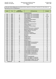 SenInnDS - ZS A 3 Be Beantwortung der schriftlichen Anfrage 13. Februar 2018 Bearbeiter: Herr Beuchelt S 18/ 13399 für den EP 05 90223 - 2082 Frage 3 3. Wie viele Tarifbeschäftigte gibt es bei der Berliner Feuerwehr insgesamt zum Stichtag 31. Dezember 2017 (bitte auflisten mit Berufsbezeichnung und Entgeltgruppen)? Anzahl der Kapitel Titel ADT-Bezeichnung Wertigkeit Tarifbeschäftigten 0561 42801 2 Technische/r Tarifbeschäftigte/r E10 0561 42801 1 Tarifb. im feuerwehrtechn. Dienst E10 0561 42801 1 Tarifb. in der Informationstechnik E10 0561 42801 2 Technische/r Tarifbeschäftigte/r E11 0561 42801 1 Tarifbeschäftigte/r E12 0561 42801 1 Tarifb. (abgeschl. wiss. Hochschulbildg) E12 0561 42801 1 Tarifb. (abgeschl. wiss. Hochschulbildg) E15 0561 42801 1 Fachärztin/Facharzt E15 0561 42801 1 Tarifbeschäftigte/r E5 0561 42801 1 Tarifbeschäftigte/r E6 0561 42801 4 Tarifbeschäftigte/r E8 0561 42801 2 Tarifb. im feuerwehrtechn. Dienst E9 0562 42801 1 Tarifb. im feuerwehrtechn. Dienst E10 0562 42801 1 Tarifb. im feuerwehrtechn. Dienst E11 0562 42801 3 Tarifbeschäftigte/r E6 0562 42801 13 Fahrer/in E6 0562 42801 32 Tarifb. im feuerwehrtechn. Dienst E6 0562 42801 9 Tarifb. im feuerwehrtechn. Dienst E7 0562 42801 55 Tarifb. im feuerwehrtechn. Dienst E8 0562 42801 27 Tarifb. im feuerwehrtechn. Dienst E9 0565 42801 1 Tarifbeschäftigte/r E10 0565 42801 2 Technische/r Tarifbeschäftigte/r E10 0565 42801 2 Tarifb. im feuerwehrtechn. Dienst E10 0565 42801 2 Tarifb. in der Informationstechnik E10 0565 42801 3 Tarifbeschäftigte/r E11 0565 42801 1 Technische/r Tarifbeschäftigte/r E11 0565 42801 2 Tarifb. im feuerwehrtechn. Dienst E11 0565 42801 13 Tarifb. in der Informationstechnik E11 0565 42801 4 Tarifbeschäftigte/r (Lehrkraft) E11 0565 42801 1 Tarifbeschäftigte/r E12 0565 42801 2 Tarifb. in der Informationstechnik E12 0565 42801 4 Tarifb. (abgeschl. wiss. Hochschulbildg) E14 0565 42801 1 Tarifb. (abgeschl. wiss. Hochschulbildg) E15 0565 42801 1 Tarifbeschäftigte/r E3 0565 42801 1 Tarifbeschäftigte/r E4 0565 42801 2 Tarifbeschäftigte/r E5 0565 42801 1 Fahrer/in E5 0565 42801 2 Tarifb. (Metallhandwerker/in) E5 0565 42801 1 Desinfektor/in E5 0565 42801 2 Tarifb. (Kraftfahrzeughandwerker/in) E5