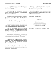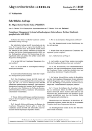 Drucksache 17 / 14 819 Schriftliche Anfrage 17. Wahlperiode Schriftliche Anfrage des Abgeordneten Martin Delius (PIRATEN) vom 24. Oktober 2014 (Eingang beim Abgeordnetenhaus am 27. Oktober 2014) und Antwort Compliance Management Systeme bei landeseigenen Unternehmen: Berliner Stadtreini- gungsbetriebe AöR (BSR) Im Namen des Senats von Berlin beantworte ich Ihre 4. Wie ist das Compliance Management zertifiziert? Schriftliche Anfrage wie folgt: Zu 4: Ein Mehrwert wurde in einer Zertifizierung bis- Die Schriftliche Anfrage betrifft Sachverhalte, die der her nicht gesehen. Senat überwiegend nicht aus eigener Zuständigkeit und Kenntnis beantworten kann. Er ist jedoch bemüht, Ihnen eine Antwort auf Ihre Anfrage zukommen zu lassen und 5. Welche Ziele sind im Rahmen des Compliance Ma- hat daher die Berliner Stadtreinigungsbetriebe (BSR) um nagement Systems vergeben? eine Stellungnahme gebeten. Die Beantwortung der An- frage beruht daher zum größten Teil auf der von den BSR Zu 5.: Siehe Antwort auf Frage 3. übergebenen Stellungnahme. 1. Ist bei der BSR ein Compliance Management Sys- 6. Auf welche Art und Weise werden von welcher tem installiert? Stelle die Compliance-Risiken erfasst und verarbeitet? Zu 1.: Ja, bei den BSR ist ein Compliance Manage- Zu 6: Für die Erfassung von Unternehmensrisiken, ment System installiert. haben die BSR ein Risikomanagement System installiert. Die Compliance Risiken werden hier ebenfalls erfasst und entsprechend den internen Vorgaben behandelt. 2. Nach welchem Rahmenkonzept wurde das Compli- ance Management System installiert? 7. Auf welche Art und Weise werden die Beschäftig- Zu 2: Das Compliance System der BSR basiert auf ten über das Compliance Management System informiert den anerkannten wissenschaftlichen/theoretischen Grund- und/oder fortgebildet und auf welche Art und Weise wer- lagen, die sich z. B. auch im Prüfungsstandard PS 980 den den Beschäftigten entsprechende Verfahrensanwei- (Grundsätze ordnungsmäßiger Prüfungen von Compliance sungen und Verhaltenskodizes zugänglich gemacht? Management Systemen) des Institutes der Wirtschaftsprü- fer oder aber in der Publikation des Verbandes Kommu- Zu 7.: Um die Beschäftigten über die gültigen Vorga- naler Unternehmen (VKU) „Compliance in Kommunalen ben zu informieren, haben die BSR ein IT-gestütztes Unternehmen“ wiederfinden. System entwickelt. Dieses System stellt nicht nur die Information der Mitarbeiterinnen und Mitarbeiter sicher, sondern gewährleistet auch, dass das Erstellen, Prüfen 3. Welche Selbstverpflichtungen sind im Zusammen- und Freigeben nachvollziehbar ist. hang mit dem Compliance Management System verein- bart worden? Mitarbeiterinnen und Mitarbeiter, die über keinen PC- Arbeitsplatz verfügen, werden über die für sie geltenden Zu 3: Spezielle Selbstverpflichtungen im Rahmen des Vorgaben durch ihren Vorgesetzten informiert. Compliance Management Systems gibt es nicht. Das Compliance System der BSR soll sicherstellen, dass Ge- Als Schulungsformen werden die bei den BSR übli- setze und interne Regelungen eingehalten werden. chen Formate verwendet. Die Drucksachen des Abgeordnetenhauses sind bei der Kulturbuch-Verlag GmbH zu beziehen. Hausanschrift: Sprosserweg 3, 12351 Berlin-Buckow · Postanschrift: Postfach 47 04 49, 12313 Berlin, Telefon: 6 61 84 84; Telefax: 6 61 78 28.
