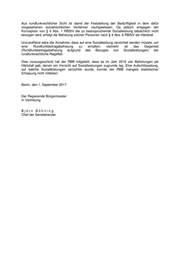 DER REGIERENDE BÜRGERMEISTER VON BERLIN Frau Abgeordnete Stefanie Fuchs (Linke) ____________________________________________________________________ über den Präsidenten des Abgeordnetenhauses von Berlin über Senatskanzlei – GSen – Antwort auf die Schriftliche Anfrage Nr. 18 / 12103 vom 16. August 2017 über Verzicht auf Sozialleistungen gemäß § 46 Abs. 1 SGB I zum Zwecke der Härtefallbefreiung beim Rundfunkbeitrag ---------------------------------------------------------------------------------------------------------------------- Im Namen des Senats von Berlin beantworte ich Ihre Schriftliche Anfrage wie folgt: 1. Wie viele Menschen haben seit 2015 gemäß § 46 Abs. 1 SGB I auf Ansprüche auf Sozialleistungen im Sinne der §§ 18 ff. SGB I verzichtet, um eine Befreiung von der Rundfunkbeitragspflicht als besonderer Härtefall beantragen zu können (bitte nach Art der Sozialleistung, auf die verzichtet wurde, aufschlüsseln)? Zu 1.: Der Rundfunkbeitragsstaatsvertrag (RBStV) geht genauso wie der frühere Rundfunkgebührenstaatsvertrag in seiner Grundkonzeption davon aus, dass eine Beitragsbefreiung nur denjenigen gewährt wird, deren Bedürftigkeit durch den Bezug bestimmter, in § 4 RBStV aufgeführter Sozialleistungen nachgewiesen ist. Hintergrund ist, dass die Rundfunkanstalten nicht in die Situation der Prüfung individueller Einkommens- und Vermögensverhältnisse kommen sollen, wofür nur Fachbehörden die erforderliche Kompetenz haben. Der (erfolgreiche) Antrag auf Bezug einer der in § 4 RBStV genannten Sozialleistungen ist somit Vorfrage der Rundfunkbeitragsbefreiung. Daneben besteht die Möglichkeit einer Befreiung als Härtefall nach § 4 Abs. 6 RBStV. Mit Hilfe dieser Norm können u. a. die Fälle gelöst werden, in denen jemand keine Sozialleistungen in Anspruch nehmen möchte, aber vom Rundfunkbeitrag befreit werden will. An sich würde hier eine Befreiung vom Rundfunkbeitrag daran scheitern, dass die Betroffenen keinen Sozialleistungsbescheid vorlegen können. Als Lösung im Sinne der Betroffenen kann jedoch zunächst ein Antrag auf Sozialleistungsbezug gestellt und dann auf die bewilligte Leistung (so dass ein Leistungsbescheid der zuständigen Sozialbehörde vorgelegt werden kann) nach § 46 Abs. 1 SGB I verzichtet werden.