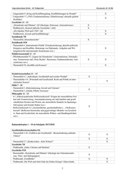 Abgeordnetenhaus Berlin – 18. Wahlperiode Drucksache 18 / 10 306 - Längsschnitt 9 „Krieg und Konfliktregelung, Konfliktlösungen im Wandel“ X - Längsschnitt 17 „UNO, Fundamentalismus, Globalisierung“ (aktuelle globale X Konflikte) Geschichte 11 - 13 - „Demokratie und Diktatur“, Q3 (Ideologie, Holocaust, Antisemitismus) X - Wahlbereich „Deutsch-jüdische Geschichte“, (Q4) X - „Die bipolare Welt nach 1945“, Q4 X - Wahlbereich „Gewalt und Konfliktlösung“ X Sozialkunde 7/8 - Themenfeld „Menschenrechte“ X Sozialkunde 9/10 - Themenfeld 4 „Internationale Politik“ (Friedenssicherung, aktuelle politische Ereignisse und Konflikte, Bedeutung von Diplomatie, Aufgaben und Wir- X kungsbereiche internationaler Institutionen usw.) Politikwissenschaft 11 - 13 - Pflichtthemenfeld T2 „Gegner der Demokratie“ (Antisemitismus, Nationalis- mus, Neonazismus und „Neue Rechte“, Rassismus, Fundamentalismus, Anti- X X semitismus usw.) - Themenfeld T6 „Konflikt und Konsens“ X Sozialwissenschaften 11 – 13 - Themenfeld 4.1 „Individuum, Gesellschaft und sozialer Wandel“ X - Themenfelder 4.4 „Wirtschaft und Gesellschaft, Recht und Politik im inter- X nationalen System“ Ethik 7 - 10 - Themenfeld 3 „Diskriminierung, Gewalt und Toleranz“ X - Themenfeld 5 „Schuld, Pflicht, Gewissen“ Philosophie 11 - 13 - 4.1 „Ethisch-praktischer Reflexionsbereich“ (Fragen der menschlichen Frei- heit und Verantwortung, Auseinandersetzung mit individuellen und gesell- schaftlichen Normen und Werten, das menschliche Handeln im Spannungs- feld eigener und fremder Kultur usw.) X - Reflexionsbereich 4.2 „Geschichtlicher, gesellschaftlicher (…) Reflexions- bereich“ (Reflexion historischer und gegenwärtiger Modelle von Geschich- te, Staat und Gesellschaft, die menschliche Willens- und Handlungsfreiheit usw.) Rahmenlehrplan 1 – 10 ab Schuljahr 2017/2018 Gesellschaftswissenschaften 5/6 - Themenfeld 3.10 „Vielfalt in der Gesellschaft - Herausforderung und/oder X X Chance“ X X - Themenfeld 3.7 „Kinderwelten - heile Welten?“ X Geschichte 7/8 - Wahlmodul „Juden, Christen und Muslime“ X Geschichte 9/10 - Basismodule „Demokratie und Diktatur“ (Ideologie des Nationalsozialis- X mus, Täter- und Opfergruppen) - Wahlmodul „Feindbilder“ X X - Wahlmodul „Die Welt nach dem Ende des Kalten Krieges“ (Querschnitt, X 2