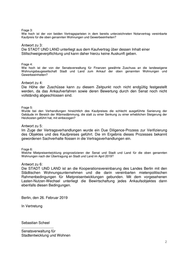 Frage 3: Wie hoch ist der von beiden Vertragsparteien in dem bereits unterzeichneten Notarvertrag vereinbarte Kaufpreis für die oben genannten Wohnungen und Gewerbeeinheiten? Antwort zu 3: Die STADT UND LAND unterliegt aus dem Kaufvertrag über dessen Inhalt einer Stillschweigeverpflichtung und kann daher hierzu keine Auskunft geben. Frage 4: Wie hoch ist der von der Senatsverwaltung für Finanzen gewährte Zuschuss an die landeseigene Wohnungsbaugesellschaft Stadt und Land zum Ankauf der oben genannten Wohnungen und Gewerbeeinheiten? Antwort zu 4: Die Höhe der Zuschüsse kann zu diesem Zeitpunkt noch nicht endgültig festgestellt werden, da das Ankaufverfahren sowie deren Bewertung durch den Senat noch nicht vollständig abgeschlossen sind. Frage 5: Wurde bei den Verhandlungen hinsichtlich des Kaufpreises die schlecht ausgeführte Sanierung der Gebäude im Bereich der Wärmedämmung, die statt zu einer Senkung zu einer erheblichen Steigerung der Heizkosten geführt hat, mit einbezogen? Antwort zu 5: Im Zuge der Vertragsverhandlungen wurde ein Due Diligence-Prozess zur Verifizierung des Objektes und des Kaufpreises geführt. Die im Ergebnis dieses Prozesses bekannt gewordenen Sachverhalte flossen in die Vertragsverhandlungen ein. Frage 6: Welche Mietpreisentwicklung prognostizieren der Senat und Stadt und Land für die oben genannten Wohnungen nach der Übertragung an Stadt und Land im April 2019? Antwort zu 6: Die STADT UND LAND ist an die Kooperationsvereinbarung des Landes Berlin mit den Städtischen Wohnungsunternehmen und die darin vereinbarten mietenpolitischen Rahmenbedingungen für Mietpreisentwicklungen gebunden. Mit dem vorgesehenen Lasten-Nutzen-Wechsel unterliegt die Bewirtschaftung jedes Ankaufsobjektes dann ebenfalls diesen Bedingungen. Berlin, den 26. Februar 2019 In Vertretung Sebastian Scheel ................................ Senatsverwaltung für Stadtentwicklung und Wohnen 2