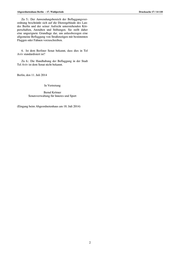 Drucksache 17 / 14 110 Schriftliche Anfrage 17. Wahlperiode Schriftliche Anfrage des Abgeordneten Tom Schreiber (SPD) vom 25. Juni 2014 (Eingang beim Abgeordnetenhaus am 02. Juli 2014) und Antwort Wie zeitgemäß ist die Verordnung über die Beflaggung von öffentlichen Gebäuden im Land Berlin? Im Namen des Senats von Berlin beantworte ich Ihre Der in jüngerer Vergangenheit jährlich von der Se- Schriftliche Anfrage wie folgt: natsverwaltung für Inneres und Sport erklärten Zustim- mung zur nicht hoheitlichen Beflaggung anlässlich des 1. Wie bewertet der Berliner Senat die Diskussion CSD liegt bereits eine sehr weitgehende Auslegung der darüber, ob am 17. Mai („Tag gegen Homophobie“) oder allgemeinen Beflaggungsgrundsätze zugrunde. Sie erfolgt am Tag des Berliner CSD’s in Berlin, die Regenbogen- in Anerkennung des damit zum Ausdruck kommenden fahne an den bezirklichen Rathäusern bzw. anderen übergeordneten Zieles der Gleichbehandlung und der Dienstgebäuden flaggt? allgemeinen gesellschaftlichen Aufmerksamkeit für diese Veranstaltung. Für eine Ergänzung der Beflaggungsver- 2. Sieht der Berliner Senat eine Möglichkeit den „In- ordnung vom 24. Februar 2003 (GVBl. S. 121) sieht der ternationalen Tag gegen Homophobie“ in die Verordnung Senat keinen Raum. aufzunehmen? Die nicht hoheitliche Beflaggung von Dienstgebäuden 3. Besteht die Möglichkeit beginnend vom „Motz- stellt einen Ausnahmefall dar. Eine rechtliche Möglich- straßenfest“ bis zum Berliner CSD in Berlin, grundsätz- keit zur Anordnung nicht hoheitlicher Beflaggung gegen- lich die Beflaggung der Regenbogenfahne in allen Berli- über den Dienststellen des Landes ist nicht gegeben. ner Bezirken anzuordnen? Zu 1. bis 3.: Die Beflaggung öffentlicher Gebäude ist 4. Wird sich im Jahr 2015 die Berliner Feuerwehr Teil der Staatssymbolik. Sie ist grundsätzlich hoheitlicher und die Senatsverwaltung für Justiz sowie die Senatsver- Natur und erfolgt mit der Europa-, Bundes- und Landes- waltung für Bildung und Jugend an der Beflaggung der flagge. Die Beflaggung ist vorgesehen bei besonderen Regenbogenfahne beteiligen? Gedächtnis- oder Ehrentagen oder anlässlich herausgeho- bener Anlässe oder Veranstaltungen, die für die breite Zu 4.: Nicht hoheitlicher Beflaggung liegt jeweils eine Bevölkerung bedeutsam sind. Sie erfolgt regelmäßig nur Entscheidung im Einzelfall zugrunde. Soweit im Jahr für einen bestimmten Tag und nicht für einen längeren 2015 das Bedürfnis zur Beflaggung mit einer nicht hoheit- Zeitraum. lichen Fahne bestehen wird, liegt diese Beurteilung zu- nächst im Entscheidungsbereich der jeweiligen Dienst- Soweit die Bezirksämter des Landes Berlin eine Be- stelle. Sollte diese die Beflaggung mit der Regenbogen- flaggung mit einer nicht hoheitlichen Fahne wünschen, fahne wünschen, steht es ihr frei, ggf. um die erforderli- steht dies – wie für alle anderen Dienststellen auch – unter che Zustimmung der für Inneres zuständigen Senats- dem Zustimmungsvorbehalt der für Inneres zuständigen verwaltung zu ersuchen. Senatsverwaltung, es sei denn, die Beflaggung findet im Zusammenhang mit einem bezirklichen Anlass oder einer bezirklichen Veranstaltung statt. Eine Zustimmung für die 5. Kann sich der Berliner Senat an der Demonstrati- Dienstsitze der Bezirksbürgermeisterinnen und Bezirks- onsroute eine Beflaggung der Regenbogenfahne in Zu- bürgermeister wurde auch 2014 für den Tag des Berliner kunft vorstellen? Christopher-Street-Days (CSD) erklärt. Die Drucksachen des Abgeordnetenhauses sind bei der Kulturbuch-Verlag GmbH zu beziehen. Hausanschrift: Sprosserweg 3, 12351 Berlin-Buckow · Postanschrift: Postfach 47 04 49, 12313 Berlin, Telefon: 6 61 84 84; Telefax: 6 61 78 28.