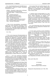 Abgeordnetenhaus Berlin – 17. Wahlperiode Drucksache 17 / 18 089 Zu 3.: Unter Berücksichtigung des Einzelfalls kann in In der weiteren Folge und nach Bewertung der vorlie- unterschiedlichem Umfang auf folgende Datenbanken genden Erkenntnisse waren sofortige strafprozessuale zurückgegriffen werden: Maßnahmen zur Täterermittlung zu diesem Zeitpunkt nicht weiter erfolgversprechend, so dass die Örtlichkeit POLIKS – Polizeiliches Landessystem zur Informati- wieder verlassen wurde. on, Kommunikation und Sachbearbeitung VOIS (ehem. EWW) – Verfahren Einwohnerwesen in Berlin 6. Aufgrund welcher Geschehensabläufe war es mög- AZR – Ausländerzentralregister lich, dass nach Angabe des Leiters der Pressestelle der SIS – Schengener Informationssystem Polizei, Thomas Neuendorf, im Magazin „Vice“ INPOL- Informationssystem der Polizei (http://www.vice.com/de/read/schlaege-beleidigungen- VISA – Visa-Informationssystem drohungen-das-sek-berlin-macht-eine-hausbegehung-809) ZEVIS – Zentrales Verkehrs-Informations-System zunächst angenommen wurde, dass der Kontaktbe- KVA – Kraftfahrzeugzulassungswesen in Berlin reichsbeamte „in das Haus gezogen“ worden sein könnte? NWR – Nationales Waffenregister Bestand nach dem vermeintlichen Angriff auf den Beam- ten zu jedem Zeitpunkt Kontakt zu ihm? Wenn nein, warum nicht? 4. Gibt es für die unterschiedlichen „kriminalitätsbe- lasteten Orte“ jeweils spezifische Anweisungen an Poli- Zu 6.: Eine Beantwortung dieser Frage kann derzeit zeidienstkräfte, von welchen Personen(-gruppen) nach nicht erfolgen, weil dies Gegenstand des laufenden Straf- § 21 Abs. 2 Nr. 1 ASOG Bln Identitäten festgestellt oder ermittlungsverfahrens ist. schwerpunktmäßig festgestellt werden sollen? Wenn ja, wie lauten diese jeweils? 7. In der Antwort auf Frage 9 meiner Schriftlichen Zu 4.: Nein. Anfrage vom 18.01.2016 (Drs. 17/766) verneint der Senat Probleme mit der Funktechnik der Berliner Polizei beim Einsatz in der Rigaer Straße am 13. Januar 2016. Laut 5. Wie war den eingesetzten Polizeidienstkräften die einem rbb-Bericht (https://www.rbb- Inaugenscheinnahme des Innenhofs der Rigaer Straße 94 online.de/panorama/beitrag/2016/01/polizei-funk- und damit das Identifizieren vermeintlich gefährlicher probleme-einsatz-rigaer-strasse.html) wurden die Funk- Gegenstände im Rahmen der Ermittlungen anlässlich des probleme jedoch von einem "Polizeisprecher" bestätigt. Angriffs auf den Kontaktbereichsbeamten überhaupt Auf welche konkreten Probleme bezieht sich dieser Pres- möglich, wenn die Tordurchfahrt des Vorderhauses laut sebericht im Detail? Antwort des Senats (Antworten auf Frage 2a) und 5a), a) In welchem Zeitraum, an welchen Orten und aus Drs. 17/17765) mit „Sperrkonstruktionen“ versperrt war? welchen Gründen traten Probleme mit der Funktechnik a) Welche Hindernisse sind für diese Inaugenschein- oder dem Funkempfang auf? nahme an welcher Stelle des Grundstücks Rigaer Straße b) Wie machten sich diese Probleme bemerkbar, hat- 94 auf welcher Rechtsgrundlage überwunden worden? ten diese Einfluss auf den Einsatz bzw. welche konkreten b) Haben sich Polizeidienstkräfte zum Zweck dieser polizeilichen Maßnahmen waren davon betroffen?" Ermittlungen über Nachbargrundstücke (Sicht-)Zugang zum Innenhof der Rigaer Straße 94 verschafft? Zu 7. a und b: In dem unter dem oben genannten Link c) Haben Polizeidienstkräfte als Konsequenz auf den veröffentlichten Bericht werden die mutmaßlichen Äuße- Angriff auf den Kontaktbereichsbeamten versucht, auf rungen des Vertreters eines Berufsverbandes und nicht die strafprozessualem Wege Zugang zu den versperrten einer / eines von der Polizeibehörde dazu autorisierten Grundstücksteilen zu erhalten? Wenn nein, warum nicht? (Presse-)Sprecherin / Sprechers zitiert. Während des Einsatzes am 13. Januar 2016 gab es Zu 5. a – c: Die ersten eingeleiteten polizeilichen keine Funkprobleme, die Einfluss auf den Einsatz hatten. Maßnahmen dienten sowohl der möglichen Ermittlung von tatverdächtigen Personen auf Grundlage der Strafpro- zessordnung als auch der möglichen Hilfe für den ange- Berlin, den 09. März 2016 griffenen Kontaktbereichsbeamten auf Grundlage des Gefahrenabwehrrechts. Der verschlossene Eingangsbereich der Rigaer Straße In Vertretung 94 versperrte den Durchgang und die Sicht auf den In- nenhof. Daher überkletterten die Einsatzkräfte auf Grund- Bernd Krömer lage des § 17 Absatz 1 des Allgemeinen Sicherheits- und Senatsverwaltung für Inneres und Sport Ordnungsgesetzes Berlin die Grundstücksmauer eines Nachbargrundstückes. Als die Einsatzkräfte die Mitteilung erhielten, dass der (Eingang beim Abgeordnetenhaus am 15. Mrz. 2016) Kontaktbereichsbeamte nicht im Objekt sei und sich mitt- lerweile in Sicherheit befände, endeten die mit Blick auf den Kontaktbereichsbeamten auf Gefahrenabwehr ausge- richteten Maßnahmen. 2