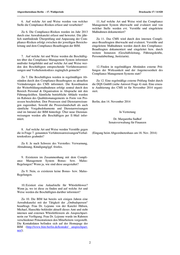 Drucksache 17 / 14 820 Schriftliche Anfrage 17. Wahlperiode Schriftliche Anfrage des Abgeordneten Martin Delius (PIRATEN) vom 24. Oktober 2014 (Eingang beim Abgeordnetenhaus am 27. Oktober 2014) und Antwort Compliance Management Systeme bei landeseigenen Unternehmen: BIM Berliner Immo- bilienmanagement GmbH Im Namen des Senats von Berlin beantworte ich Ihre Zu 4. Das CMS wurde im Rahmen der Qualitätsma- Schriftliche Anfrage wie folgt: nagement Zertifizierung nach DIN EN ISO 9001 im Jahre 2013 aufgrund gesonderter Audits mit dem Fokus CMS 1. Ist bei den BIM ein Compliance Management Sys- durch die Deutsche Gesellschaft zur Zertifizierung von tem installiert? Managementsystemen (DQS GmbH, Frankfurt) bewertet und erfolgreich zertifiziert. „Für das Compliance Ma- Zu 1. Ja. Die Berliner Immobilienmanagement GmbH nagement wurden für deren Anwendung verbindliche (BIM) verfügt seit November 2013 über sämtliche Be- Festlegungen geschaffen. Auf Basis einer allgemeinen standteile eines Compliance Management Systems Wirksamkeitsprüfung wird bestätigt, dass sie, gemäß (CMS). relevanter Rechtsfelder, alle Wirksamkeitselemente be- rücksichtigt, um mit hinreichender Sicherheit sowohl Risiken als auch Regelverstöße rechtzeitig zu erkennen 2. Nach welchem Rahmenkonzept wurde das Com- bzw. zu verhindern.“ (vgl. „Zertifikat Compliance Ma- pliance Management System installiert? nagement“ der DQS GmbH, vom 4.12.2013; Zertifikat gültig bis: 3.12.2016). Das Zertifikat findet sich auf der Zu 2. Das CMS der BIM orientiert sich am Standard Unternehmens-Homepage unter http://www.bim- IDW PS 980 und wurde in das bestehende Qualitätsma- berlin.de/unternehmen/zertifizierungen/. nagementsystem (QMS) der BIM nach DIN EN ISO 9001 voll integriert. Somit liegt ein integriertes Management- system für die BIM vor. 5. Welche Ziele sind im Rahmen des Compliance Management Systems vorgegeben? 3. Welche Selbstverpflichtungen sind im Zusammen- Zu 5. Ziel des Compliance Management Systems ist hang mit dem Compliance Management System verein- es, Geschäftsrisiken zur Erkennen und deren Eintritt bart worden? bestmöglich abzuwehren. Darüber hinaus sind die Orga- nisation der Einhaltung von Regeln und Gesetzen (Com- Zu 3. „Vertrauen ist die Basis unserer Arbeit. Es kann pliance), das Einleiten und die Überwachung notwendiger nur dort wachsen, wo gegenseitiger Respekt, Fairness, Maßnahmen hierzu Ziele des Compliance Management Transparenz, Loyalität und Engagement gepflegt und Systems. Das Unterbinden jeglicher Form der Korruption geschätzt werden. Diese Werte sind die Grundlage unse- steht dabei im Vordergrund. Zu diesem Zweck hat die rer Unternehmenskultur.“ Weitere Selbstverpflichtungen BIM in 2013 den Geschäftsprozess „Risiko- und Compli- finden sich im „Verhaltenskodex der BIM gegen Korrup- ancemanagement“ im Zuge des Aufbaus des CMS entwi- tion“ vom 14.10.2013, der in Kurzform auf der Unter- ckelt und eingeführt. Dieser Prozess regelt, wie die oben nehmensseite der BIM zu finden ist (http://www.bim- genannten Ziele durch die Beteiligten Fachfunktionen berlin.de/unternehmen/compliance/). umgesetzt werden. Ein Hinweisgebersystem, Risikobe- wertungen, Wirksamkeitsprüfungen und Maßnahmen zur Anpassung bestehender Regelungen sind Bestandteil des 4. Wie ist das Compliance Management System zerti- Prozesses. fiziert? Die Drucksachen des Abgeordnetenhauses sind bei der Kulturbuch-Verlag GmbH zu beziehen. Hausanschrift: Sprosserweg 3, 12351 Berlin-Buckow · Postanschrift: Postfach 47 04 49, 12313 Berlin, Telefon: 6 61 84 84; Telefax: 6 61 78 28.