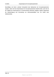 Aus- und Fortbildung 803. A-2100/1 Die Teilnahme an den im zentralen Schulungsprogramm eingerichteten Qualifi- zierungsmaßnahmen zur Wahrnehmung der Aufgaben einer Ansprechperson für Korruptions- prävention ist für diesen Personenkreis (einschließlich bestellter Stellvertretungen) obligatorisch. Werden Soldatinnen und Soldaten mit der Ausübung der Funktion einer Ansprechperson beauftragt, ist insoweit der Erwerb der ATN 1000237 vorzusehen. Seitens der Beschäfti- gungsstellen ist darauf hinzuwirken, dass möglichst zeitnah im Zusammenhang mit der Bestellung zur Wahrnehmung dieses Nebenamtes eine Einplanung der Betroffenen in die jeweiligen Lehrgänge erfolgt. Seite 23 Stand: Juni 2014