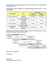 selbst erstelltes Computerprogramm könnte als Korrekturfaktor das kalkulatorische Vermögen erhöhen. Nachfolgende Tabelle verdeutlicht die Zusammenhänge zwischen Strom- und Be- standsgrößen: Gesamtvermögen Kalkulatorisches +/- fiktive Korrektur- Leistungen Kosten Vermögen faktoren Nachfolgendes Schaubild verdeutlicht Abgrenzungen und Schnittmengen von Aus- zahlungen, Ausgaben, Aufwand und Kosten. Berlin, den 1. August 2018 In Vertretung Klaus Feiler Senatsverwaltung für Finanzen