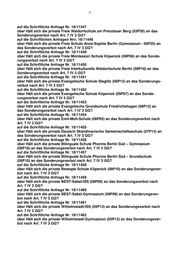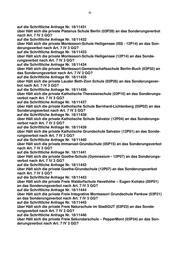 -5- auf die Schriftliche Anfrage Nr. 18/11415 über Hält sich die private Evangelische Grundschule Fronau (12P03) an das Sonde- rungsverbot nach Art. 7 IV 3 GG? auf die Schriftliche Anfrage Nr. 18/11416 über Hält sich die private Evangelische Grundschule Berlin Buch (03P33) an das Sonderungsverbot nach Art. 7 IV 3 GG? auf die Schriftliche Anfrage Nr. 18/11417 über Hält sich die private Elisabethstift-Schule (12P06) an das Sonderungsverbot nach Art. 7 IV 3 GG? auf die Schriftliche Anfrage Nr. 18/11418 über Hält sich die private Demokratische Schule X (12P10) an das Sonderungsver- bot nach Art. 7 IV 3 GG? auf die Schriftliche Anfrage Nr. 18/11419 über Hält sich die private Christburg Campus ISS (03P03) an das Sonderungsverbot nach Art. 7 IV 3 GG? auf die Schriftliche Anfrage Nr. 18/11420 über Hält sich die private Christburg Campus Grundschule (03P03) an das Sonde- rungsverbot nach Art. 7 IV 3 GG? auf die Schriftliche Anfrage Nr. 18/11421 über Hält sich die private bip-Grundschule Berlin-Pankow (03P18) an das Sonde- rungsverbot nach Art. 7 IV 3 GG? auf die Schriftliche Anfrage Nr. 18/11422 über Hält sich die private August-Herrmann-Francke-Schule (05P04) an das Sonde- rungsverbot nach Art. 7 IV 3 GG? auf die Schriftliche Anfrage Nr. 18/11423 über Hält sich die private Alternative Schule (12P11) an das Sonderungsverbot nach Art. 7 IV 3 GG? auf die Schriftliche Anfrage Nr. 18/11424 über Hält sich die private Quinoa-Schule Wedding (01P49) an das Sonderungsver- bot nach Art. 7 IV 3 GG? auf die Schriftliche Anfrage Nr. 18/11425 über Hält sich die private MeineSchuleBerlin (08P09) an das Sonderungsverbot nach Art. 7 IV 3 GG? auf die Schriftliche Anfrage Nr. 18/11426 über Hält sich die private Kristall Grundschule (01P50) an das Sonderungsverbot nach Art. 7 IV 3 GG? auf die Schriftliche Anfrage Nr. 18/11427 über Hält sich die private Freie Schule Pankow (03P13) an das Sonderungsverbot nach Art. 7 IV 3 GG? auf die Schriftliche Anfrage Nr. 18/11428 über Hält sich die private Katholische Schule Sankt Paulus (01P05) an das Sonde- rungsverbot nach Art. 7 IV 3 GG? auf die Schriftliche Anfrage Nr. 18/11429 über Hält sich die private Katholische Schule Sankt Marien (Gymnasium - 08P04) an das Sonderungsverbot nach Art. 7 IV 3 GG? auf die Schriftliche Anfrage Nr. 18/11430 über Hält sich die private SchuleEins (03P20) an das Sonderungsverbot nach Art. 7 IV 3 GG?