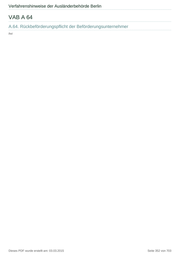 Verfahrenshinweise der Ausländerbehörde Berlin VAB A 64 A.64. Rückbeförderungspflicht der Beförderungsunternehmer frei Dieses PDF wurde erstellt am: 03.03.2015 Seite 352 von 703