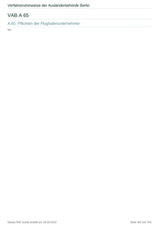 Verfahrenshinweise der Ausländerbehörde Berlin VAB A 65 A.65. Pflichten der Flughafenunternehmer frei Dieses PDF wurde erstellt am: 03.03.2015 Seite 353 von 703