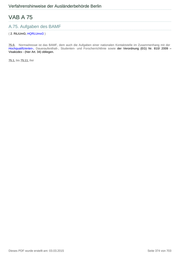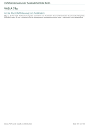 Verfahrenshinweise der Ausländerbehörde Berlin VAB A 74 A.74 Beteiligung des Bundes; Weisungsbefugnis frei Dieses PDF wurde erstellt am: 03.03.2015 Seite 372 von 703