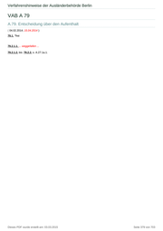 Verfahrenshinweise der Ausländerbehörde Berlin VAB A 79 A.79. Entscheidung über den Aufenthalt ( 04.02.2014; 15.04.2014 ) 79.1. ''frei 79.2.1.1. ... weggefallen ... 79.2.1.2. bis 79.2.2. s. A.27.1a.1. Dieses PDF wurde erstellt am: 03.03.2015 Seite 379 von 703