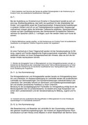 3 7. Worin bestehen nach Kenntnis des Senats die größten Schwierigkeiten in der Anerkennung von Erzieher*innen, die ausländische Qualifikationen mitbringen? Zu 7.: Bei der Ausbildung zur Erzieherin/zum Erzieher in Deutschland handelt es sich um eine sog. Breitbandausbildung, das heißt, sie qualifiziert für alle Arbeitsfelder der Kinder- und Jugendhilfe sowie der Erwachsenenarbeit. Entsprechende Ausbildungen in anderen Ländern sind oft nur auf Teilarbeitsbereiche ausgerichtet. Anpassungs- maßnahmen müssen daher die fehlenden Teilbereiche abdecken. Sprachkenntnisse müssen auf dem Qualifikationsniveau des Gemeinsamen Europäischen Referenz- rahmens für Sprachen (GER) C 1 vorliegen, auch hier werden meist noch Kurse ab- solviert. 8. Welche Maßnahmen werden ergriffen, um die Anerkennung von Erzieher*innen mit ausländischer Qualifikation zu ermöglichen? Welche Programme werden hier angeboten? Zu 8.: An einer Fachschule in freier Trägerschaft werden mit der Senatsverwaltung für Bil- dung, Jugend und Familie abgestimmte Ergänzungsmodule vorgehalten. Die Antrag- stellenden erhalten mit ihrem Auflagenbescheid den Hinweis, dass sie dort die feh- lenden Inhalte nachstudieren können. 11. Werden die Antragsteller*innen im Bildungsbereich vor ihrer Antragstellung beraten und ggf. un- terstützt bei der Beschaffung aller notwendiger Dokumente? Gibt es Mentorenprogramme zur Unter- stützung bei der Anerkennung von beruflichen Qualifikationen bzw. Nachqualifizierungen? Bitte um kurze Vorstellung der Programme. Zu 11. (s. Ihre Nummerierung): Die Antragsstellerinnen und Antragessteller werden bereits vor Antragsstellung bera- ten und unterstützt. Im Anpassungslehrgang für Lehrkräfte werden die ausländischen Lehrkräfte von Seminarleitungen und Fachseminarleitungen individuell betreut und unterstützt. Die Lehrkräfte nehmen an Seminaren und Ausbildungsveranstaltungen teil und erhalten persönliches Feedback zu ihrem Unterricht. Beratung für die sozialpädagogischen Fachkräfte vor Antragstellung erfolgt durch die Beratungsstellen des IQ-Landesnetzwerks. Es besteht eine enge Kooperation zwi- schen dem Landesnetzwerk und der Senatsverwaltung für Bildung, Jugend und Fa- milie. 12. Inwieweit wird eine ausländische Berufsqualifikation im Bildungsbereich für einen Einstieg als Quereinsteiger*in im Schulbetrieb anerkannt? Zu 12. (s. Ihre Nummerierung): Alle Bewerberinnen und Bewerber als Lehrkräfte für den Quereinstieg unterliegen den gleichen Qualifizierungsbedingungen. Sie müssen ein abgeschlossenes Hoch- schulstudium auf dem Niveau eines Masters in einem Bedarfsfach der Berliner Schu-