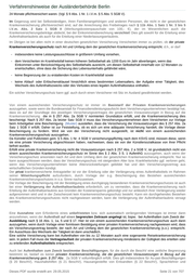 Verfahrenshinweise der Ausländerbehörde Berlin Spezialitätenköche (§ 26 BeschV) sowie bei internationalem Personalaustausch (§ 31 BeschV) und Werkverträgen gem. § 39 BeschV. Auch Personen, die eine Aufenthaltserlaubnis zum Zwecke der Aus- und Weiterbildung erhalten (§ 2 BeschV), die bestimmten Berufsgruppen nach § 7 BeschV angehören, sowie die Fälle des §§ 6, 9 – 15 BeschV fallen hierunter. In den Fällen der §§ 3 – 5 und 8 BeschV ist einzelfallbezogen zu prüfen, ob der Aufenthalt auf einen bestimmten Zeitraum angelegt ist. Für Ehegatten und Kinder, die einen Titel nach dem 6. Abschnitt aus dem Aufenthalt des Stammberechtigten herleiten, gilt Entsprechendes. Bei der Erteilung einer Aufenthaltserlaubnis aus humanitären Gründen zum vorübergehenden Aufenthalt (§§ 25 Abs. 4 S. 1 bzw. 4 a) bzw. der Verlängerung eines Schengenvisums (§ 6 Abs. 3 bzw. Art. 33 Visakodex) ist gleichfalls davon auszugehen, dass der Aufenthalt auf einen bestimmten Zeitraum begrenzt ist. Wird die Erteilung oder Verlängerung einer Aufenthaltserlaubnis für eine freiberufliche Tätigkeit (§ 21 Abs. 5) beantragt, kommt es für die Anforderungen an die Krankenversicherung darauf an, ob in dem jeweiligen Einzelfall die Prognose gerechtfertigt ist, dass der Aufenthalt auf Dauer angelegt ist. Nach unseren Erfahrungen ist im Zweifel, insbesondere bei einer künstlerischen oder sprachlehrenden Tätigkeit, von einer begrenzten Aufenthaltsdauer auszugehen. Merke: Bei Studierenden wird ein Nachweis ausreichenden Krankenversicherungsschutzes verlangt. Studierende können sich von der Versicherungspflicht befreien lassen, wenn sie über eine anderweitige Krankenversicherung verfügen. Diese Befreiung wird von den gesetzlichen Krankenkassen (GKV) ausgesprochen und ist unwiderruflich. Die GKV prüfen aber nicht Art und Umfang der vorgelegten anderweitigen Krankenversicherung. Daher ist bei Studierenden unabhängig vom Alter auch bei vorliegender Immatrikulationsbescheinigung ein Nachweis über einen ausreichenden Versicherungsschutz zu verlangen, der allerdings nur geringeren Anforderungen entsprechen muss (s.o.). Im Einreiseverfahren kann bei der Zustimmung zur Erteilung eines Visums in jedem Fall der Abschluss einer Reisekrankenversicherung für die Einreise und die Dauer der Visumgültigkeit genügen, wenn auch durch hiesige Referenzpersonen /-unternehmen eine Krankenversicherung der o.g. Art nicht abgeschlossen werden kann und dies nachvollziehbar erklärt wird. In diesem Falle ist aber ein konkretes Angebot einer Krankenversicherung mit Nennung des zu erwartenden Beitragssatzes für die Zeit nach Visumsgültigkeit vorzulegen (ebenfalls mit einem von der Ausländerbehörde zur Verfügung gestellten Formular möglich). Zur ersten Erteilung des Aufenthaltstitels im Inland gelten dann die o.g. Anforderungen, es muss also noch während der Gültigkeit des Visums ein Vertrag abgeschlossen werden, der einen ausreichenden Krankenversicherungsschutz gewährt. Die Aufenthaltserlaubnis wird nicht erstmalig erteilt, ohne dass ein ausreichender Krankenversicherungsschutz nachgewiesen ist und damit feststeht, dass die allgemeine Erteilungsvoraussetzung des § 5 Abs. 1 Nr. 1 i.V.m. § 2 Abs. 3 S. 1 vorliegt. Scheitert die Erteilung allein hieran und macht der Antragssteller geltend, dass eine Versicherung seiner Wahl den Versicherungsabschluss von einem gesicherten Aufenthaltsrecht in Deutschland abhängig macht, kann die Erteilung gem. § 38 VwVfG schriftlich zugesichert werden. Bei beabsichtigten Kurzaufenthalten (§ 6 Abs. 1 Nr. 2 bzw. Art. 24 Visakodex) kann nach Nr. 2.3.5.2. AufenthG- VwV vermutet werden, dass der Ausländer das umfangreiche Leistungsspektrum, das von einer gesetzlichen Krankenversicherung abgedeckt wird, erkennbar nicht in Anspruch nehmen wird, so dass in diesen Fällen eine Krankenversicherung auch dann als ausreichend betrachtet werden kann, wenn sie nicht dem Leistungskatalog der gesetzlichen Krankenversicherung entspricht. Voraussetzung der Erteilung eines Schengen-Visums zum kurzfristigen Aufenthalt von bis zu 90 Tagen ist nach Kapitel V der Gemeinsamen Konsularischen Instruktion an die diplomatischen Missionen und die konsularischen Vertretungen, die von Berufskonsularbeamten geleitet werden (GKI ABl. C 326 vom 22. Dezember 2005, S. 1 bis 149) grundsätzlich der Nachweis einer ausreichenden Reisekrankenversicherung auch für Repatriierungs-, ärztliche Nothilfe- und Notaufnahmeleistungen im Krankenhaus für das gesamte Schengen- Gebiet. Dies gilt auch für Verlängerungen eines solchen Visums gem. § 6 Abs. 3 S. 1 bzw. Art. 33 Visakodex. 2.3.1.13. Leistungen Dritter Ein Dritter in diesem Sinne ist jede Person, die bei der Bedarfs- und Einkommensberechnung nicht als Mitglied der aufenthaltsrechtlichen Bedarfsgemeinschaft anzusehen ist. Dies sind zunächst alle Personen, die mit dem Ausländer, dessen Lebensunterhaltssicherung zu prüfen ist, nicht in häuslicher Lebensgemeinschaft leben, und zwar selbst dann, wenn sie mit dem Ausländer verwandt oder diesem gegenüber unterhaltsverpflichtet sind. Dritte sind auch Personen, die zwar mit dem Ausländer in einer Haushaltsgemeinschaft leben, aber nicht in die aufenthaltsrechtliche Bedarfsberechnung einbezogen werden. Letzteres ist dann der Fall, wenn sie dem Ausländer, dessen Lebensunterhaltssicherung zu prüfen ist, nicht zum Unterhalt verpflichtet sind (vgl. A.2.3.1.3.) oder wenn es sich um wirtschaftlich selbstständige volljährige Kinder handelt, bzw. Kinder die verheiratet, oder über 25. Jahre alt sind (vgl. A.2.3.1.5.). Durch Leistungen Dritter ist der Lebensunterhalt grundsätzlich nur gesichert, wenn und solange sich auch der Dritte rechtmäßig im Bundesgebiet aufhält. Darüber hinaus ist immer eine auflösende Bedingung zu verfügen (vgl. A.2.3.1.15.) und eine Verpflichtungserklärung zu verlangen sowie die Feststellung hinreichender Bonität des sich verpflichtenden Dritten nach unter A.2.3.1.14. folgenden Regelungen zu tre
