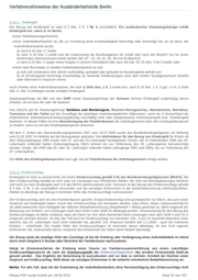 Verfahrenshinweise der Ausländerbehörde Berlin von einem gesicherten Lebensunterhalt ausgegangen werden kann, kann auf eine erneute Berechnung des Lebensunterhalts verzichtet werden, so sich an der wirtschaftlichen Situation der Bedarfsgemeinschaft nichts geändert hat und die Berechnung im Visumsverfahren vorgenommen wurde. Ansonsten, d.h. etwa bei visafreier Einreise, sollte zunächst eine Fiktionsbescheinigung ausgestellt und die Vorlage des Bescheides der Familienkasse abgewartet werden. 2.3.2.3. Erziehungsgeld / Betreuungsgeld Die Regelung über das – weggefallene – Erziehungsgeld ist auf das nunmehr geregelte Betreuungsgeld nach dem Bundeselterngeldgesetz anlog anzuwenden. Der Bezug des Betreuungsgeldes ist daher eine unschädliche öffentliche Leistung anzusehen. Hängt die Sicherung des Lebensunterhalts von dem Bezug des Betreuungsgeldes ab, ist immer zu beachten, dass diese Leistung nur für einen vorübergehenden Zeitraum gewährt wird. Die Prognose eines dauerhaft gesicherten Lebensunterhalts ist vor diesem Hintergrund nur dann gerechtfertigt, wenn der Lebensunterhalt der Familie auch nach Wegfall des Betreuungsgeldanspruchs weiter gesichert sein wird. 2.3.2. 4. Elterngeld Ab Januar 2007 wird – auf Antrag – anstelle des Erziehungsgeldes – ein einkommensabhängiges Elterngeld für ab Januar 2007 geborene Kinder gezahlt. Für vor dem 01.01.2007 geborene oder davor mit dem Ziel der Adoption aufgenommene Kinder findet weiter das Bundeserziehungsgeldgesetz Anwendung (§ 27 Bundeselterngeld- und Elternzeitgesetz – BEEG). Anspruchsberechtigt ist immer nur ein Erziehungsberechtigter . Erfüllen beide Elternteile die Anspruchsvoraussetzungen, bestimmen sie, wer von ihnen welche Monatsbeträge in Anspruch nimmt (§ 5 Abs. 1 BEEG). Anspruch auf Elterngeld hat gem. § 1 BEEG grundsätzlich, wer einen Wohnsitz oder seinen gewöhnlichen Aufenthalt in Deutschland hat und mit seinem Kind in einem Haushalt lebt, das Kind des Ehegatten oder Lebenspartners in seinen Haushalt aufgenommen hat, mit einem Kind in einem Haushalt lebt und die von ihm erklärte Anerkennung der Vaterschaft noch nicht wirksam oder über die von ihm beantragte Vaterschaftsfeststellung noch nicht entschieden ist oder ein Kind mit dem Ziel der Annahme als Kind in Obhut genommen hat und dieses Kind selbst betreut und erzieht und keine oder keine volle Erwerbstätigkeit ( 30 Wochenstunden oder Beschäftigung zur Berufsausbildung) ausübt. EU- und EWR-Bürger sowie Staatsangehörige der Schweiz erhalten Elterngeld; ein anderer ausländischer Staatsangehöriger ist nur anspruchsberechtigt, wenn er im Besitz einer Niederlassungserlaubnis, einer Aufenthaltserlaubnis ist, die zur Ausübung einer Erwerbstätigkeit berechtigt oder berechtigt hat, es sei denn, die Aufenthaltserlaubnis wurde a) nach § 16 oder 17 erteilt, b) nach § 18 Abs. 2 erteilt und die Zustimmung der Bundesagentur für Arbeit darf nach der BeschV nur für einen bestimmten Höchstzeitraum erteilt werden (§§ 18 – 22, 26, 31, 36, 39 und 40 BeschV), c) nach § 23 Abs. 1 wegen eines Krieges in seinem Heimatland oder nach §§ 23a, 24, 25 Abs. 3 bis 5 erteilt, d) nach § 104a erteilt oder einer nach Buchstabe c) erteilten Aufenthaltserlaubnis ist und a) sich seit mindestens drei Jahren rechtmäßig, gestattet oder geduldet im Bundesgebiet aufhält und b) im Bundesgebiet berechtigt erwerbstätig ist, laufende Geldleistungen nach dem Dritten Sozialgesetzbuch bezieht oder Elternzeit in Anspruch nimmt. Daneben haben Staatsangehörige der Türkei, Algeriens, Marokkos, und Tunesiens auch dann Anspruch auf Elterngeld, wenn sie sich rechtmäßig – auch ohne Aufenthalts- oder Niederlassungserlaubnis oder mit einer Duldung - in Deutschland aufhalten, sofern sie pflicht- oder freiwillig versichert sind (Arbeitslosen-, Kranken-, Renten- oder Unfallversicherung). Ein Anspruch auf Elterngeld besteht ab Erteilung des Aufenthaltstitels und kann in der Zeit vom Tag der Geburt bis zur Vollendung des 14.Lebensmonats des Kindes bezogen werden. Für angenommene und aufgenommene Kinder kann Elterngeld ab Aufnahme bis zur Vollendung des 8. Lebensjahres des Kindes bezogen werden (§ 4 Abs. 1 BEEG). Elterngeld wird an Vater und Mutter für max. 14 Monate gezahlt, beide können den Zeitraum frei untereinander aufteilen, Dieses PDF wurde erstellt am: 29.05.2015 Seite 26 von 707