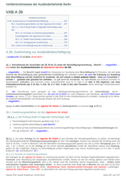 Verfahrenshinweise der Ausländerbehörde Berlin VAB A 39 Inhaltsverzeichnis A.39. Zustimmung zur Ausländerbeschäftigung .......................... 267 39.1. Zustimmungsverfahren mit den Agenturen für Arbeit . 267 39.1.1.1. Die Prüfung findet in folgender Reihenfolge statt: ...... 267 39.1.1.3. Formular im Zustimmungsverfahren .............. 267 Zuständigkeiten der Agenturen für Arbeit ..................... 268 39.1.1.5. Zeitlich beschränkte Zustimmung .................. 269 39.1.1.6. Versagung der Zustimmung ........................... 270 39.4. Dauer und Verlängerung der Zustimmung .................. 270 A.39. Zustimmung zur Ausländerbeschäftigung ( AuslBeschR; 17.12.2013; 30.04.2015 ) 39. 0. Normadressat der Vorschriften der §§ 39 bis 42 sowie der Beschäftigungsverordnung – BeschV - ... weggefallen ... sind neben den Ausländerbehörden die Operativen Services der BA . ... weggefallen ... Die BeschV regelt sowohl die Zulassung zur Ausübung einer Beschäftigung für Personen, die sich zum Zwecke der Beschäftigung oder gewerblichen Ausbildung hier aufhalten wollen als auch die Zulassung zur Ausübung einer Beschäftigung und das Verfahren für Ausländer, die sich erlaubt zu einem anderen Zweck – etwa aus humanitäre n Gründe n - gestattet oder geduldet hier aufhalten.. Sie gilt auch für Ausländer, die sich bereits aus anderen Gründen im Bundesgebiet aufhalten und nunmehr einen Aufenthaltstitel nach § 17 oder § 18 oder § 19a begehren, wie etwa Arbeitsplatzsuchende (vgl. § 16 Abs. 4, Abs. 5b, § 17 Abs. 3 oder § 18c) oder Personen, deren bisheriger Aufenhaltszweck entfallen ist. In der Verordnung nicht geregelt ist das Arbeitsgenehmigungsverfahren für Unionsbürger, deren Arbeitnehmerfreizügigkeit beschränkt ist ( bis zum 31.12.2013 nur noch Bulgarien und Rumänien, ab 01.07.2013 auch Kroatien, vgl. hierzu C.13.). Diese können gemäß § 284 SGB III eine Arbeitserlaubnis-EU erhalten, zuständig ist für Berlin, die östlichen Bundesländer und Schleswig-Holstein die ZAV Duisburg. ... weggefallen ... Merke: In allen Zweifelsfällen ist die Agentur für Arbeit um Stellungnahme zu ersuchen (vgl. A.72.7.). 39.1. Zustimmungsverfahren mit den Agenturen für Arbeit 39.1.1. 1. Die Prüfung findet in folgender Reihenfolge statt: 1. Erwerbstätigkeit kraft Gesetzes gestattet (vgl. A.4.) 2. zustimmungsfreie Beschäftigung nach BeschV 3. Verzicht auf das Zustimmungsverfahren bei zustimmungspflichtigen Beschäftigungen ( Globalzustimmungen der BA; vgl. B.BeschV. 37. ... weggefallen ... . 39.1.1. 2. Vor jeder Anfrage bei der Agentur für Arbeit ist aus Gründen der Verwaltungseffizienz zu prüfen, ob überhaupt die aufenthaltsrechtlichen Erteilungsvoraussetzungen für den Titel vorliegen. Kommt zum Beispiel die Erteilung einer AE nach § 18 Abs. 2 nicht in Betracht, weil der Betroffene Ausweisungsgründe gesetzt hat, die zu einer Versagung gem. § 5 Abs. 1 Nr. 2 führen, so ist der Antrag auf AE schon deshalb abzulehnen. Erhält der Betroffene sodann eine Duldung, gelten für den möglichen Zugang zur Beschäftigung andere Regelungen (vgl. hierzu Ausführungen zu § 4 Abs. 3 sowie B.BeschV .32. und B.BeschV. 33 .). 39.1.1.3. Formular im Zustimmungsverfahren Die Anfragen an die Agentur für Arbeit um Zustimmung werden auf dem mit der hiesigen Regionaldirektion abgestimmten Formular unter Beachtung der beigefügten Ausfüllhinweise erstellt. Dieses ist wie ein Antrag gefasst und enthält einen Hinweis auf die Mitwirkungspflicht nach § 82. Weiter wird der Ausländer darauf hingewiesen, dass - sollten noch erforderliche Angaben oder Unterlagen fehlen - er diese innerhalb einer Frist von 2 Wochen der seit dem 01.05.2011 zentral für die Regionaldirektionen Berlin -Brandenburg, Nord, Sachsen-Anhalt-Thürungen und Sachsen zuständigen Agentur für Arbeit Essen , Team 009 , zu übermitteln hat, weil sein Antrag ansonsten abgelehnt werden kann: Dieses PDF wurde erstellt am: 29.05.2015 Seite 267 von 707
