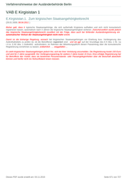 Verfahrenshinweise der Ausländerbehörde Berlin VAB E Kirgisistan 1 E.Kirgisistan.1. Zum kirgisischen Staatsangehörigkeitsrecht (29.01.2009; 08.04.2011 ) Bisher galt, dass k irgisische Staatsangehörige, die sich außerhalb Kirgisiens aufhalten und sich nicht konsularisch registrieren lassen, automatisch nach 3 Jahren die kirgisische Staatsangehörigkeit verlieren. Zwischenzeitlich wurde jedoch das kirgisische Staatsangehörigkeitsrecht novelliert mit der Folge, dass auch bei fehlender Auslandsregistrierung ein automatischer Verlust der Staatsangehörigkeit nicht mehr eintritt. Damit ist die bisherige Regelung, wonach bei kirgisischen Staatsangehörigen vor Erteilung bzw. Verlängerung des Aufenthaltstitels zu prüfen ist, ob die Betroffenen registriert sind und sie ggf. auf der Grundlage des § 5 Abs. 1 Nr. 1a i.V.m. § 82 Abs. 1 AufenthG aufzufordern, im Rahmen der Mitwirkungspflicht diesen Passeintrag über die konsularische Registrierung vornehmen zu lassen, entbehrlich . ... weggefallen ... Es steht kirgisischen Staatsangehörigen jedoch frei, sich bei ihrer Vertretung anzumelden. Die Registrierung kostet 150 Euro und wird für 2 Jahre ausgestellt. Der Verlängerungsantrag für weitere 2 Jahre kostet 15 Euro. Eine erfolgte Registrierung hat für Betroffene den Vorteil, dass sie bestimmte Personenstands- oder Passangelegenheiten über die Botschaft abwickeln können und hierfür nicht ins Herkunftsland reisen müssen. Dieses PDF wurde erstellt am: 03.11.2015 Seite 671 von 727