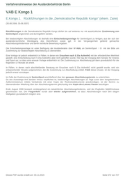 Verfahrenshinweise der Ausländerbehörde Berlin VAB E Kongo 1 E.Kongo.1. Rückführungen in die „Demokratische Republik Kongo“ (ehem. Zaire) (30.08.2006; 30.09.2007) Rückführungen in die Demokratische Republik Kongo dürfen bis auf weiteres nur mit ausdrücklicher Zustimmung von SenInnSport angeordnet und durchgeführt werden. Bei beabsichtigten Abschiebungen ist deshalb eine Entscheidungsvorlage für SenInnSport zu fertigen, aus der sich der ausländerrechtliche Werdegang des Betroffenen sowie ggf. in der Vergangenheit geltend gemachte Abschiebungshindernisse und deren rechtliche Bewertung ergeben. Die Entscheidungsvorlage ist unter Beifügung der Ausländerakte über IV AbtL an SenInnSport I B mit der Bitte um Zustimmung zur beabsichtigten Abschiebung zu übersenden. Eine Vorlage ist jedoch entbehrlich in Fällen, in denen ein Ersuchen nach § 23a AufenthG mit der erforderlichen Mehrheit gestellt, eine Entscheidung nach § 23a AufenthG aber nicht getroffen wurde. Hier lag der Vorgang dem Senator für Inneres und Sport vor, so dass eine erneute Vorlage entbehrlich ist. Die Zustimmung zur Abschiebung gilt dann grundsätzlich für die folgenden 12 Monate als erteilt. In Fällen, in denen nach abschließender Beratung ein Ersuchen nach § 23a AufenthG nicht gestellt wurde, wird ein entsprechender Hnweis aufgenommen, der die Zustimmung zur Abschiebung erklärt. Fehlt dieser Zusatz, ist der Vorgang jedoch erneut vorzulegen. Im Falle der Zustimmung ist SenInnSport anschließend über den genauen Abschiebungstermin zu unterrichten. Da das Auswärtige Amt darüber hinaus verpflichtet ist, beabsichtigte Abschiebungen 10 Tage zuvor dem kongolesischen Außenministerium mittels Verbalnote mit einer Kopie der Rückreisedokumente anzukündigen, ist der SenInn zu übersendenden Mitteilung über den Abschiebungstermin gleichzeitig eine Kopie des Laissez Passer beizufügen. Ende August 2006 bestand vorübergehend ein tatsächliches Abschiebungshindernis, weil der Flughafen Ndjili/Kinshasa geschlossen war. Der Flugverkehr wurde aber wieder aufgenommen, so dass Abschiebungen nach den obigen Maßgaben grundsätzlich möglich sind. Dieses PDF wurde erstellt am: 03.11.2015 Seite 672 von 727