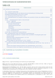 Verfahrenshinweise der Ausländerbehörde Berlin VAB A 25 Inhaltsverzeichnis A.25. Aufenthalt aus humanitären Gründen .............................................................................................................................. 191 == ....................................................................................................................................................................................... 595 A.25.1. Anerkannte Asylberechtigte ................................................................................................................................... 191 A.25.2. Flüchtlingseigenschaft nach dem Abkommen über die Rechtsstellung der Flüchtlinge (Genfer Flüchtlingskonvention)/Subsidiärer Schutz nach § 4 AsylVfG ........................................................................................... 192 A.25.3. Abschiebungsverbote gemäß § 60 Abs. 5 oder 7 .................................................................................................. 192 A.25.4. Aufenthaltserlaubnisse aus dringenden humanitären oder persönlichen Gründen oder erheblichem öffentlichen Interesse ............................................................................................................................................................................ 194 A.25.4a. .... Aufenthaltserlaubnis für Opfer von Menschenhandel ..................................................................................... 196 A.25.4a.0. Allgemeines ............................................................................................................................................ 196 A.25.4a.1. Erteilungsvoraussetzungen ....................................................................................................................... 196 Besondere Voraussetzungen .............................................................................................................................. 196 Regelerteilungsvoraussetzungen ........................................................................................................................ 197 Sperrwirkung ........................................................................................................................................................ 197 Erteilungsdauer .................................................................................................................................................... 343 A.25.4a.3. Verlängerung nach Abschluss des Strafverfahrens ................................................................................. 197 A.25.4a.4. Nebenbestimmungen ................................................................................................................................ 197 A.25.4b. Opfer von ausbeuterischen Arbeitsverhältnissen ................................................................................................ 198 A.25.5. Aufenthaltserlaubnis wegen eines bestehenden Ausreisehindernisses ................................................................ 198 Familiäre Lebensgemeinschaft kann in zumutbarer Weise ausschließlich im Bundesgebiet gelebt werden ............. 198 Patchwork-Familien .................................................................................................................................................... 199 Bestehende familiäre Lebensgemeinschaft i.S.v. Art. 6 GG ....................................................................................... 200 Übergeordnete öffentliche Interessen ......................................................................................................................... 201 Erteilung entgegen der Sperrwirkung aus § 11 Abs. 1 AufenthG ............................................................................... 202 A.25.s.1. Beginn und Fortsetzung einer Schul- oder Berufsausbildung bzw. eines Studiums ........................................... 203 Aufnahme eines Studiums während des Besitzes einer Aufenthaltserlaubnis nach § 25 Abs. 4 Satz 1 oder Abs. 4a ..... 203 Aufnahme eines Studiums während des Besitzes einer Aufenthaltserlaubnis nach § 25 Abs. 5 .............................. 203 Fortsetzung des Studiums nach Wegfall des Ausreisehindernisses in den Fällen des § 25 Abs. 5 ........................... 204 A.25. Aufenthalt aus humanitären Gründen == ( 14.07.2015; NeubestG) A.25.1. Anerkannte Asylberechtigte 25.1.0 § 25 Abs. 1 regelt die Rechtsfolge nach Anerkennung als Asylberechtigter. 25.1.1. Die AE ist in den Fällen des § 25 Abs. 1 erstmalig für drei Jahre zu erteilen (§ 26 Abs. 1 S.2; zur Frage der Geltungsdauer der Verlängerung der Aufenthaltserlaubnis vgl. A.26.3.2.). Reiseausweise für Flüchtlinge werden für drei Jahre ausgestellt, sofern die AE für diesen Zeitraum erteilt wird. Der Reiseausweis ist mit einem Chip versehen, in dem das biometrische Merkmal Gesichtsbild gespeichert ist. Eine Verlängerung des Reiseausweises für Flüchtlinge kommt nicht in Betracht, § 58 Satz 2 AufenthV. In eilbedürftigen Fällen kann ein vorläufiger Reiseausweis auf dem bisherigen Muster mit einer Gültigkeitsdauer von bis zu einem Jahr ausgestellt werden. Allerdings sind die jeweiligen Aufkleber mit Personendaten von Kindern nicht mehr zu verwenden. Kinder bis zur Vollendung des 12. Lebensjahres erhalten einen Reiseausweis ohne Speichermedium, der höchstens 6 Jahre gültig sein darf, längstens jedoch bis zur Vollendung des 12. Lebensjahres, § 4 Abs. 1 Satz 3 und 4 Dieses PDF wurde erstellt am: 03.12.2015 Seite 191 von 724