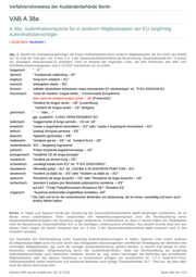 Verfahrenshinweise der Ausländerbehörde Berlin VAB A 38a A.38a. Aufenthaltserlaubnis für in anderen Mitgliedstaaten der EU langfristig Aufenthaltsberechtigte ( 19.06.2015; NeubestG ) 38a. 0. Spricht ein Drittstaatsangehöriger mit einem Aufenthaltstitel eines anderen Mitgliedstaates der EU (nicht des EWR) vor, so muß der Titel gem. Art. 8 Abs. 3 S. 2 der Daueraufenthaltsrichtlinie die Bezeichnung "Daueraufenthalt-EU" in (einer) der jeweiligen Amtssprache(-n) enthalten. Dies ist anhand der folgenden Liste, die den Hinweisen des BMI zum Richtlinienumsetzungsgesetz vom 2.10.2007 entnommen ist, zu prüfen. bulgarisch: " C" dänisch: " Fastboende udlænding – EF" englisch: "long-term resident -- EC" estnisch: “pikaajaline elanik -- EÜ“ finnisch: "pitkään oleskelleen kolmannen maan kansalaisen EY-oleskelulupa" od. "P-EU 2003/109-EU französisch: "carte de résident longue durée -- Communauté Européenne oder carte de résident longue durée -- UE (Frankreich)" "résident de longue durée -- UE" (Luxemburg) "résident de longue durée -- CE" (Belgien) griechisch: " -- " oder „ -“ ggf. zusätzlich: "LONG-TERM RESIDENT-EC" italienisch: "soggiornante di lungo periodo -- CE od. UE" kroatisch: "osoba s dugotrajnim boravištem -- EZ" oder "osoba s dugotrajnim boravištem -- EU" lettisch: "pastvgi dzvojosa persona -- ES" litauisch: "ilgalaikis gyventojas -- EB" maltesisch: "residenti gat-tul -- KE " od. "resident fit-tul – UE" niederländisch: "EG -- langdurig ingezetene" polnisch: "Pobyt rezydenta dugoterminowego -- UE" portugiesisch: "residênte CE de longa duração" rumänisch: "rezident pe termen lung – CE" schwedisch: „varaktigt bosatt inom EU“ od. "P-EG 2003/109/EG" slowakisch: "dlhodobý pobyt -- EU" od. „OSOBA S DLHODOBÝM POBYTOM – EÚ“ slowenisch: "rezident za daljši as -- ES" oder "rezident za daljši as -- EU" spanisch: “Residente de larga duración -- CE” oder “Residente de larga duración -- UE” tschechisch: "povolení k pobytu pro dlouhodob pobývajícího rezidenta –- ES" auf eAT: "Trvalý Pobyt/Permanent Residence 68 * Rezident ES" ungarisch: "huzamos tartózkodási engedéllyel rendelkez –EK" * Die Zahl und ist für die tschechischen Behörden von Bedeutung; sie ist immer zweistellig und kann auch andere Werte haben Merke: In Italien und Spanien wurde bei Umsetzung der Daueraufenthaltsrichtlinie auch denjenigen Ausländern, die im Besitz eines unbefristeten Titels vergleichbar der Niederlassungserlaubnis sind, die Rechtsstellung eines Daueraufenthaltsberechtigten von Gesetzes wegen eingeräumt. Problematisch ist, dass in diesen Fällen die Titeletiketten nicht die Bezeichnung "Daueraufenthalt- EU" in der jeweiligen Landessprache enthalten. Aus diesem Grunde lässt sich aus diesen Titeln wegen der klaren Vorgaben des Art. 8 Abs. 3 der Daueraufenthaltsrichtlinie kein Anspruch nach § 38a AufenthG herleiten. Der Nachweis der Rechtsstellung eines langfristig Aufenthaltsberechtigten in Italien, Spanien oder einem anderen EU-Mitgliedstaat kann auch mit einer durch den Antragsteller beizubringenden schriftlichen Bestätigung der Behörden des vorherigen Mitgliedstaates, ggf. auch der hiesigen Auslandsvertretung, geführt werden. In diesem Fall bedarf es einer besonders sorgfältigen Vergewisserung durch die Ausländerbehörden, dass die Rechtsstellung als langfristig Aufenthaltsberechtigter auch tatsächlich verliehen worden ist. Ggf. sollen Nachfragen bei Behörden des betreffenden Mitgliedstaates oder bei dessen Vertretung in Deutschland erfolgen (so ausdrücklich Nr. 2.7.4. AufenthG-VwV). Selbstverständlich stellen italienische und spanische Behörden auch gültige "Daueraufenthalt- EU" - Titel aus, die dann aber auch als solche bezeichnet sind. Dieses PDF wurde erstellt am: 03.12.2015 Seite 266 von 724