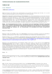 Verfahrenshinweise der Ausländerbehörde Berlin VAB A 53 Inhaltsverzeichnis A.53. Zwingende Ausweisung ................................................................................................................. 315 53.1. Zwingende Ausweisung nach § 53 Nr. 1 ................................................................................ 315 53.2. Zwingende Ausweisung nach § 53 Nr. 2 ................................................................................ 315 53.s.1. Allgemeine Hinweise zur Ausweisung ....................................................................................... 315 53.s.1.1. Grundsätzliche Rahmenbedingungen ............................................................................ 315 53.s.1.2. Maßgeblicher Zeitpunkt für die Beurteilung der Sach- und Rechtslage ............................ 316 53.s.1.3. Ermessen und Verhältnismäßigkeitsprüfung gemäß Art. 8 Abs. 2 EMRK ........................ 316 53.s.1.4. Wiederaufgreifen des Verfahrens / Rücknahme bestandskräftiger Ausweisungen .......... 317 53.s.1.5. Noch nicht bestandskräftige Ausweisungen ohne erkennbare Ermessensentscheidung ...... 318 A.53. Zwingende Ausweisung ( 03.11.2010 ; 27.01.2012 ) 53.1. Zwingende Ausweisung nach § 53 Nr. 1 Zur zwingenden Ausweisung nach § 53 Nr. 1 zweite Alternative führen mehrere strafgerichtliche Verurteilungen wegen vorsätzlicher Straftaten zu mehreren Freiheits- oder Jugendstrafen von zusammen mindestens drei Jahren, wenn die Verurteilungen innerhalb eines Zeitraums von fünf Jahren vor der letzten Verurteilung erfolgt sind. Der Ausländer muss mehrfach verurteilt worden sein. Er braucht dabei allerdings nicht mehrfach die Genze von mindestens drei Jahren erreicht zu haben. Dies ergibt sich schon aus dem Wortlaut der Norm (" zusammen"). Freiheits- und Jugendstrafen können zeitlich gemischt sein. Die Strafen können auch zur Bewährung ausgesetzt sein, was bei den ersten Freiheitsstrafen regelmäßig der Fall sein wird. Hätte der Gesetzgeber hier nur Freiheits- und Jugendstrafen ohne Bewährung berücksichtigen wollen, so hätte er eine Formulierung vergleichbar der des § 53 Nr. 2 oder des § 54 Nr. 1 gefunden (im Ergebnis ebenso Renner AuslR., Kommentar 8. Aufl. § 53 RdNr. 9; OVG Nds., U. vom 16.05.2006 - 11 LC 324/05; InfAuslR 2006, 350). Die Verurteilungen müssen in dem gesetzlich vorgegebenen Zeitraum von fünf Jahren erfolgt sein, wobei für die Berechnung der Zeitpunkt der Rechtskraft maßgeblich ist. Auf den Zeitpunkt der Tatbegehung kommt es dagegen nicht an. Die Berücksichtigung von Verurteilungen ist jedoch nur zulässig, wenn diese nicht dem Verwertungsverbot des § 51 BZRG unterliegen. Liegt der Ausweisung dagegen eine Verurteilung zu einer Gesamtfreiheitsstrafe oder Einheitsjugendstrafe zugrunde, so ist dies so gefundene Strafmaß verbindlich und liegt ggf. ein Ausweisungsgrund nach § 53 Nr. 1 erste Alternative vor. In die Gesamtfreiheitsstrafe einbezogene Verurteilungen können sodann nicht mehr gesondert berücksichtigt werden (zu den Fällen, in denen der Gesamtfreiheitsstrafe vorsätzliche und fahrlässige Taten zugrunde lagen, vgl. Nr. 53.1.1. AufenthG- VwV). 53.2. Zwingende Ausweisung nach § 53 Nr. 2 Die zwingende Ausweisung wegen Verurteilung zu einer Jugendstrafe von mindestens zwei Jahren nach dem Betäubungsmittelgesetz oder der anderen genannten Straftaten gemäß § 53 Nr. 2, 1. Alt. setzt voraus, dass die Verurteilung zu zwei Jahren gerade auf einer solchen Straftat beruhte. Erging eine einheitliche Jugendstrafe zu zwei Jahren oder mehr auch wegen anderer Delikte, kommt eine Ist-Ausweisung nur dann in Betracht, wenn sich aus dem Strafurteil eindeutig entnehmen lässt, dass gerade auf die Betäubungsmittel- oder eine andere in der Vorschrift genannte Straftat anteilig mindestens zwei Jahre der Strafe entfallen sollten. Lässt sich dies - wie zumeist - nicht feststellen, kommt lediglich eine Regelausweisung nach § 54 in Betracht (so auch Ziffer 53.2.1. AufenthG-VwV). Wird ein Ausländer zu einer Jugendstrafe von mindestens 2 Jahren verurteilt und wurde in dem Urteil nicht ausdrücklich darüber entschieden, ob diese Strafe zur Bewährung ausgesetzt wird, oder wird die Entscheidung über die Bewährung ausdrücklich aufgeschoben, so liegt der Ausweisungsgrund des § 53 Nr. 2 (noch) nicht vor. § 57 Abs. 1 JGG eröffnet den Jugendgerichten die Möglichkeit die Entscheidung über die Strafaussetzung zur Bewährung hinauszuzögern. Ob die Gerichte hiervon Gebrauch machen, entscheiden sie nach pflichtgemäßem Ermessen. Bleibt es bei einem Vorbehalt der Entscheidung oder sagt das Urteil darüber nichts aus, so muß das nachträgliche Beschlussverfahren durchgeführt werden. Bis dahin kann die Jugendstrafe nicht vollstreckt werden, weil es an der nötigen Rechtskraft bezüglich der Bewährungsfrage mangelt. Damit fehlt es in einem solchen Fall bis zu einem nachträglichen Beschluss über die Bewährungsfeststellung an den tatbestandlichen Voraussetzungen des § 53 Nr. 2. In diesen Fällen ist zuzuwarten. Entscheidet das Gericht im nachhinein, setzt die Jugendstrafe nicht zur Bewährung aus und tritt insoweit Rechtskraft ein, ist von einem Regelausweisungsgrund des § 53 Nr. 2 auszugehen. Dies folgt schon darus, dass auch diese Entscheidung an den §§ 21 ff. JGG auszurichten ist. 53.s.1. Allgemeine Hinweise zur Ausweisung 53.s.1.1. Grundsätzliche Rahmenbedingungen Nach der Rechtsprechung des Bundesverfassungsgerichts stellt jede Ausweisung aufgrund des damit verbundenen Dieses PDF wurde erstellt am: 03.12.2015 Seite 315 von 724