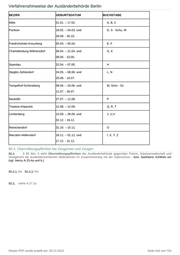 Verfahrenshinweise der Ausländerbehörde Berlin BEZIRK GEBURTSDATUM BUCHSTABE Mitte 01.01. – 17.02. A, B, C Pankow 18.02. – 04.03. und D, S - Schu, W 29.09. - 30.10. Friedrichshain-Kreuzberg 05.03. – 05.04. E, F Charlottenburg-Wilmersdorf 06.04. – 21.04. und G, K 08.05. - 23.05. Spandau 22.04. – 07.05. H Steglitz-Zehlendorf 24.05. – 08.06. und L, N 25.06. - 10.07. Tempelhof-Schöneberg 09.06. – 24.06. und M, Schv - Sz 11.07. - 26.07. Neukölln 27.07. – 11.08. P Treptow-Köpenick 12.08. – 12.09. Q, R, T Lichtenberg 13.09. – 28.09. und J, U,V 02.12. - 16.12. Reinickendorf 31.10. – 15.11. O Marzahn-Hellersdorf 16.11. – 01.12. und I, X, Y, Z 17.12. - 31.12. 90.4. Übermittlungspflichten bei Zeuginnen und Zeugen 90.4 . § 90 Abs. 5 sieht Übermittlungspflichten der Ausländerbehörde gegenüber Polizei, Staatsanwaltschaft und Strafgericht bei ausländerrechtlichen Maßnahmen im Zusammenhang mit der Opferschutz - bzw. Sanktions richtlinie vor (vgl. hierzu A.25.4a und b.). 90.4.1. bis 90.4.3. frei 90.5. siehe A.27.1a. Dieses PDF wurde erstellt am: 03.12.2015 Seite 416 von 724