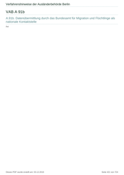 Verfahrenshinweise der Ausländerbehörde Berlin VAB A 91b A.91b. Datenübermittlung durch das Bundesamt für Migration und Flüchtlinge als nationale Kontaktstelle frei Dieses PDF wurde erstellt am: 03.12.2015 Seite 421 von 724