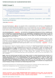 Verfahrenshinweise der Ausländerbehörde Berlin VAB E Israel 1 Inhaltsverzeichnis E.Israel.1. Ausländerrechtliche Behandlung jüdischer Zuwanderer, auch anderer Staatsangehörigkeiten ...................... 663 1. Ausstellung eines Reiseausweises für Flüchtlinge/für Ausländer .......................................................................... 664 Zur Zumutbarkeit/Unzumutbarkeit ...................................................................................................................... 664 Zum Verfahren bei vorliegendem Antrag auf Ausstellung/Verlängerung eines Reiseausweises für Flüchtlinge ...... 664 2. Ausstellung eines Reiseausweises für Staatenlose ............................................................................................... 665 E.Israel.1. Ausländerrechtliche Behandlung jüdischer Zuwanderer, auch anderer Staatsangehörigkeiten ( 20.01.2015; 05.06.2015 ) Die Innenministerkonferenz hatte am 18. November 2005 im Umlaufverfahren einen Beschluss zur Neuregelung der Aufnahme und Verteilung jüdischer Zuwanderer und ihrer Familienangehörigen aus der ehemaligen Sowjetunion mit Ausnahme der baltischen Staaten (Herkunftsgebiet) erlassen. Dieser ergänzt e bzw. ersetzt e die früheren Beschlüsse etwa für die Personen, denen eine Aufnahmezusage eines Landes vor dem 1. Januar 2005 zugestellt worden ist (Altfallregelung). SenInn hat te uns Schreiben vom 16.1.2006 auf der Grundlage des § 23 AufenthG angewiesen entsprechend zu verfahren. Unter Berücksichtigung der ... weggefallen ... am 24.05.2007 in Kraft getretenen Änderung des § 23 Abs. 2 AufenthG, gem. der die Zuständigkeit für die Entscheidungen über die sog. Übergangsfälle II (Antragstellung zwischen dem 01.07.2001 und dem 31.12.2004 ohne Zustellung einer Aufnahmezusage) und für Neufälle (Antragstellung ab 01.01.2005) zusätzlich zur bereits bestehenden Zuständigkeit für das Verteilverfahren von den Ländern auf das BAMF überging (vgl. § 75 Nr. 8 AufenthG), gilt im Einzelnen Folgendes: Die von den deutschen Auslandsvertretungen bis zum 31. Dezember 2004 zugestellten Aufnahmezusagen der Länder bleiben nach § 102 Abs. 1 Satz 1 Aufenthaltsgesetz wirksam. Zum Zweck der Einreise wird den Betroffenen jüdischen Zuwanderern und ihren gemeinsam mit ihnen aufzunehmenden Familienangehörigen ... weggefallen ... in allen Fällen ein auf 90 Tage befristetes nationales Visum erteilt, in das Auflagen aus der Aufnahmezusage zu übernehmen sind. Die Zustimmung nach § 32 AufenthV durch SenInn gilt als erteilt, so dass wir der Visaerteilung ... weggefallen ... in keinem Fall zustimmen müssen. Die aufgenommenen jüdischen Zuwanderer erhalten bei Vorsprache eine Niederlassungserlaubnis nach § 23 Abs. 2 in ihren Nationalpass, wobei als Rechtsgrundlage der § 23 Abs. 2 ohne weiteren Zusatz einzutragen ist. Die Niederlassungserlaubnis ist immer rückwirkend auf den Zeitpunkt der Antragstellung zu erteilen. Die Ausstellung eines Reiseausweises für Flüchtlinge ist ausgeschlossen. Aufgenommene Familienangehörige, die selbst nicht die Voraussetzungen für eine Aufnahme als jüdischer Zuwanderer erfüllen, erhalten eine Aufenthaltserlaubnis nach § 23 Abs. 2 AufenthG. Die Aufenthaltserlaubnis wird für 3 Jahre befristet bzw. verlängert. Für die Erteilung einer Niederlassungserlaubnis an Familienangehörige gelten keine Besonderheiten. Insofern wird auf die Ausführungen zu § 26 Abs. 4 verwiesen. Merke: Soweit die Aufnahmezusage des BAMF mit der Auflage versehen ist, einfache Sprachkenntnisse innerhalb von 12 Monaten nach Einreise gegenüber der Ausländerbehörde nachzuweisen, ist für die jüdischen Zuwanderer dennoch eine Niederlassungserlaubnis bzw. für ihre Familienangehörigen eine Aufenthaltserlaubnis für 3 Jahre zu erteilen. Einer gesonderten Nebenbestimmung zum Titel bedarf es nicht, da das BAMF die Auflage bereits verfügt hat, und hier ohnehin eine Verpflichtung zum Integrationskurs zu verfügen ist (§§ 44 Abs. 1 S. 1 Nr. 2, 44 a Abs. 1 S. 1 Nr. 1 a und b). Der Betroffene wird gebeten, den entsprechenden Nachweis durch eine Bestätigung über das Bestehen des Integrationskurses auf dem Postweg zu erbringen. Des Setzens einer Wiedervorlage bedarf es nicht. Die Niederlassungserlaubnis bzw. Aufenthaltserlaubnis wird bei Bezug von Leistungen nach dem Zweiten oder dem Zwölften Buch Sozialgesetzbuch oder dem Asylbewerberleistungsgesetz mit der Auflage „Wohnsitznahme im Land Berlin erforderlich“ versehen (bzgl. der Einzelheiten vgl. die Ausführungen unter A.12.2.). Jüdischen Zuwanderern, die ihre ursprgl. Aufnahmezusage nicht in Anspruch genommen haben, soll unter bestimmten Voraussetzungen die Möglichkeit gegeben werden, erneut einen Aufnahmeantrag zu stellen. Das BMI hat hierzu am 21.05.2015 seine Aufnahmeanordnung nach § 23 Abs. 2 AufenthG wie folgt modifiziert: Dieses PDF wurde erstellt am: 03.12.2015 Seite 663 von 724