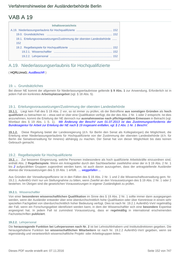 Verfahrenshinweise der Ausländerbehörde Berlin VAB A 19 Inhaltsverzeichnis A.19. Niederlassungserlaubnis für Hochqualifizierte .............................................. 152 19.0. Grundsätzliches .................................................................................... 152 19.1. Erteilungsvoraussetzungen/Zustimmung der obersten Landesbehörde ...... 152 19.2. Regelbeispiele für Hochqualifizierte ....................................................... 152 19.2.1. Wissenschaftler ........................................................................... 152 19.2.2. Lehrpersonal ................................................................................ 152 A.19. Niederlassungserlaubnis für Hochqualifizierte ( HQRLUmsG; AuslBeschR ) 19. 0. Grundsätzliches Bei dieser NE kommt der allgemein für Niederlassungserlaubnisse geltende § 9 Abs. 1 zur Anwendung. Erforderlich ist in jedem Fall ein konkretes Arbeitsplatzangebot (vgl. § 18 Abs. 5). 19.1. Erteilungsvoraussetzungen/Zustimmung der obersten Landesbehörde 19.1.1. Liegt kein Fall des § 19 Abs. 2 vor, so ist immer zu prüfen, ob der Betroffene aus sonstigen Gründen als hoch qualifiziert zu betrachten ist – etwa weil er über eine Qualifikation verfügt, die der des Abs. 2 Nr. 1 oder 2 entspricht. Ist dies anzunehmen, kommt die Erteilung der NE dennoch nur ausnahmsweise nach pflichtgemäßem Ermessen in Betracht (vgl. Wortlaut des § 19 Abs. 1 S. 1). Mit Änderung der BeschV zum 01.07.2013 ist das Zustimmungserfordernis der Bundesagentur für Arbeit zur Erteilung der NE nach § 19 insgesamt entfallen, vgl. § 2 Abs. 1 Nr. 1 BeschV. 19.1.2. Diese Regelung bietet der Landesregierung (d.h. für Berlin den Senat als Kollegialorgan) die Möglichkeit, die Erteilung einer Niederlassungserlaubnis für Hochqualifizierte von der Zustimmung der obersten Landesbehörde (d.h. für Berlin die Senatsverwaltung für Inneres) abhängig zu machen. Der Senat hat von dieser Möglichkeit bis dato keinen Gebrauch gemacht. 19.2. Regelbeispiele für Hochqualifizierte 19.2. 0 . Zur besseren Eingrenzung, welche Personen insbesondere als hoch qualifizierte Arbeitskräfte einzuordnen sind, enthält Abs. 2 Regelbeispiele. Wenn ein Antragsteller durch den Sachbearbeiter zweifelsfrei einer der in § 19 Abs. 2 Nr. 1 bis 2 aufgezählten Gruppen zugeordnet werden kann, ist auch davon auszugehen, dass der antragstellende Ausländer ebenso die Voraussetzungen des § 19 Abs. 1 erfüllt. ... weggefallen ... Aus Gründen der Verwaltungseffizienz ist in den Fällen des § 19 Abs. 2 Nr. 1 und 2 die Wissenschaftsverwaltung gem. Nr. 19.2.1. AufenthG-VwV nur um Stellungnahme zu bitten, wenn Zweifel an den Voraussetzungen des § 19 Abs. 2 Nr. 1 oder 2 bestehen. Im Übrigen sind die gesetzlichen Voraussetzungen in eigener Zuständigkeit zu prüfen. 19.2.1. Wissenschaftler Von einer besonderen wissenschaftlichen Qualifikation im Sinne des § 19 Abs. 2 Nr. 1 sollte immer dann ausgegangen werden, wenn der Ausländer entweder über eine überdurchschnittlich hohe Qualifikation oder über Kenntnisse in einem sehr speziellen Fachgebiet von überdurchschnittlich hoher Bedeutung verfügt. Dies ist nach Nr. 19.2.1 AufenthG-VwV regelmäßig der Fall, wenn ein Forschungsgebiet identifiziert werden kann, in dem der Wissenschaftler sich eine besondere Expertise angeeignet hat. In jedem Fall ist zumindest Voraussetzung, dass er regelmäßig in international erscheinenden Fachzeitschriften publiziert. 19.2.2. Lehrpersonal Die herausragende Funktion bei Lehrpersonen nach Nr. 2 ist bei Lehrstuhlinhabern und Institutsdirektoren gegeben. Die herausgehobene Funktion bei wissenschaftlichen Mitarbeitern ist nach Nr. 19.2.2 AufenthG-VwV gegeben, wenn sie eigenständig und verantwortlich wissenschaftliche Projekt- oder Arbeitsgruppen leiten. Dieses PDF wurde erstellt am: 07.11.2016 Seite 152 von 747