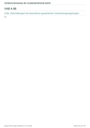 Verfahrenshinweise der Ausländerbehörde Berlin VAB A 88 A.88. Übermittlungen bei besonderen gesetzlichen Verwendungsregelungen frei Dieses PDF wurde erstellt am: 07.11.2016 Seite 424 von 747