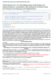 Verfahrenshinweise der Ausländerbehörde Berlin VAB B.BeschV.31.-33. Beschäftigung bei Aufenthalten aus völkerrechtlichen, humanitären oder politischen Gründen sowie von Personen mit Duldung und Asylbewerbern Inhaltsverzeichnis B.BeschV.31.-33. Beschäftigung bei Aufenthalten aus völkerrechtlichen, humanitären oder politischen Gründen sowie von Personen mit Duldung und Asylbewerbern ............................................................................................................................... 562 ............................................................................................................................................................................................ 562 B.BeschV.31. Beschäftigung bei Aufenthalt aus völkerrechtlichen, humanitären oder politischen Gründen ..................... 562 B.BeschV.32. Beschäftigung von Personen mit Duldung .................................................................................................. 562 B.BeschV.33. Versagung der Erlaubnis zur Ausübung einer Beschäftigung von Personen mit Duldung ......................... 565 B.BeschV.31.-33. Beschäftigung bei Aufenthalten aus völkerrechtlichen, humanitären oder politischen Gründen sowie von Personen mit Duldung und Asylbewerbern ( IntG; 06.09.2016; 18.10.2016 ) B.BeschV.31. Beschäftigung bei Aufenthalt aus völkerrechtlichen, humanitären oder politischen Gründen § 31 räumt allen Ausländerinnen und Ausländern, die eine AE aus humanitären Gründen besitzen, einen uneingeschränkten Arbeitsmarktzugang ein. Der Gesetzgeber geht davon aus, dass diese Personengruppe bereits nach der bis zum 30.06.2013 gültigen Rechtslage weitestgehend uneingeschränkten Arbeitsmarktzugang hatte (vgl. insbesondere § 25 Abs. 1 Satz 4, Abs. 2 Satz 2 AufenthG, § 3 b Abs. 1 Nr. 2 BeschVerfV in der bis zum 30.06.2013 gültigen Fassung). Im Interesse der Rechtsvereinfachung wird das Recht auf uneingeschränkten Arbeitsmarktzugang allein vom Besitz der Aufenthaltserlaubnis abhängig gemacht. Die ab dem 01.07.2013 geltende Rechtslage ist von dem Grundsatz geprägt, dass alle Ausländerinnen und Ausländer, die sich hier rechtmäßig aufhalten, auch arbeiten dürfen (vgl. BR-Drs. 182/13, S. 23 sowie § 27 Abs. 5 AufenthG i.d.F. des Gesetzes zur Verbesserung der Rechte von international Schutzberechtigten und ausländischen Arbeitnehmern). Dies soll auch die Inanspruchnahme von Sozialleistungen vermindern. Das durch § 31 BeschV i.V.m. § 4 Abs. 2 Satz 3 AufenthG eingeräumte Ermessen ist daher grundsätzlich zu Gunsten der Inhaber von AEs nach dem 5. Abschnitt auszuüben und „Erwerbstätigkeit gestattet.“ zu verfügen. Das Ermessen ist hingegen zu Lasten des Betroffenen auszuüben, solange nicht feststeht, ob in näherer Zukunft eine Ausreiseverpflichtung durchzusetzen ist oder nicht. Deshalb ist in den Fällen des § 25 Abs. 4a und Abs. 4b AufenthG, solange sich der Betroffene noch keine 18 Monate rechtmäßig im Bundesgebiet aufgehalten hat (vgl. A.21.6.), wie folgt zu verfügen: „Beschäftigung nur nach Erlaubnis der Ausländerbehörde (§ 4 Abs. 2 AufenthG), selbstständige Tätigkeit nicht gestattet.“ In diesen Fällen ist mit § 26 Abs. 1 S. 1, 3 AufenthG von einem nur vorübergehenden Aufenthalt auszugehen. Die selbstständige Tätigkeit kann jedoch gestattet werden, wenn an ihr ein besonderes öffentliches Interesse besteht (vgl. A.21.6.). Nach 18 Monaten ist die Erwerbstätigkeit zu gestatten. Bei einer Aufenthaltserlaubnis nach § 25 Abs. 4 S. 1 AufenthG ist hingegen immer zu verfügen: „Erwerbstätigkeit nicht gestattet. Bei Verstößen droht Unternehmer/Arbeitgeber Bußgeld bis zu 500.000 Euro. “ Der nur vorübergehende Aufenthaltszweck in diesen Fällen wie z.B. die medizinische Behandlung oder die Patientenbegleitung ist in der Regel unvereinbar mit einer Erwerbstätigkeit. B.BeschV.32. Beschäftigung von Personen mit Duldung B.BeschV.32.0. Bei der Ausstellung von Duldungen sind folgende Grundsätze zu beachten: Stets ist die Ausschlussregelung des § 60a Abs. 6 AufenthG mit zu prüfen. In den Fällen des § 60a Abs. 6 AufenthG ist die Duldung immer mit den rechtlichen Hinweis en „Erwerbstätigkeit nicht gestattet (§ 60a Abs. 6 Nr. ... AufenthG). Bei Verstößen droht Unternehmer/Arbeitgeber Bußgeld bis zu 500.000 Euro. “ zu verfügen. In den sonstigen Fällen wird bei Geduldeten der rechtliche Hinweis „Beschäftigung nur mit Erlaubnis der Ausländerbehörde.“ eingetragen. Wird seitens der Bundesagentur die Zustimmung erteilt, wird das Etikett mit dem Eintrag Dieses PDF wurde erstellt am: 07.11.2016 Seite 562 von 747
