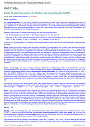 Verfahrenshinweise der Ausländerbehörde Berlin Entscheidung ergeht, § 71 Abs. 7. Bzgl. sonstiger Auflagen, der räumlichen Beschränkung und der Möglichkeit einer Erwerbstätigkeit nachzugehen, sind die Regelungen der §§ 47 - 67 anzuwenden (vgl. insbes. zur räumlichen Beschränkung D.59a.). Hinsichtlich der Erwerbstätigkeit vgl. D.60.1. sowie A.60a.6. Merke: Dies gilt auch in den Fällen, in denen der Antragsteller vom Erfordernis eines Aufenthaltstitels befreit ist, einen Aufenthaltstitel mit einer Gesamtgeltungsdauer von bis zu 6 Monaten besitzt oder einen Antrag auf Erteilung einer Aufenthaltserlaubnis gestellt hat, der eine Fiktionswirkung nach § 81 Abs. 3 und 4 AufenthG entfaltet. Insofern gilt § 55 Abs. 2 AsylG analog. Anders ist dagegen bei Asylfolgeanträgen von Angehörigen eines EU- oder EWR-Staates zu verfahren. Hier gelten die Ausführungen unter D.55.0.1. 71.5.2. frei 71.6.1. Auf eine erneute Abschiebungsandrohung ist dann zu verzichten, wenn der Asylfolgeantrag nach Eintritt der Vollziehbarkeit einer früheren Abschiebungsandrohung gestellt worden ist und das BAMF die Durchführung eines weiteren Asylverfahrens abgelehnt hat. Dies gilt nach dem ausdrücklichen Gesetzeswortlaut auch dann, wenn der Betroffene zwischenzeitlich schon aus dem Bundesgebiet ausgereist und mithin (vorübergehend) seiner Ausreisepflicht nachgekommen ist. Nach dem eindeutigen Willen des Gesetzgebers erledigt sich eine Abschiebungsandrohung durch die zwischenzeitliche Ausreise des Ausländers in diesen Fällen gerade nicht. 71.6.2. bis 71.8. frei Dieses PDF wurde erstellt am: 07.11.2016 Seite 654 von 747