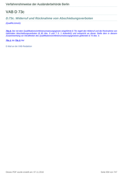 Verfahrenshinweise der Ausländerbehörde Berlin VAB D 73c D.73c. Widerruf und Rücknahme von Abschiebungsverboten (QualRiLiUmsG) 73c.0. Der mit dem Qualifikationsrichtlinienumsetzungsgesetz eingeführte § 73c regelt den Widerruf und die Rücknahme von nationalen Abschiebungsverboten (§ 60 Abs. 5 und 7 S. 1 AufenthG) und entspricht an dieser Stelle dem in diesem Zusammenhang vor Inkrafttreten des Qualifikationsrichtlinienumsetzungsgesetzes geltenden § 73 Abs. 3. 73c.1. bis 73c.3. frei E-Mail an die VAB-Redaktion Dieses PDF wurde erstellt am: 07.11.2016 Seite 658 von 747