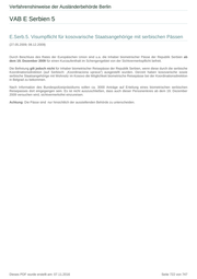Verfahrenshinweise der Ausländerbehörde Berlin VAB E Serbien 5 E.Serb.5. Visumpflicht für kosovarische Staatsangehörige mit serbischen Pässen (27.05.2009; 08.12.2009) Durch Beschluss des Rates der Europäischen Union sind u.a. die Inhaber biometrischer Pässe der Republik Serbien ab dem 19. Dezember 2009 für einen Kurzaufenthalt im Schengengebiet von der Sichtvermerkspflicht befreit. Die Befreiung gilt jedoch nicht für Inhaber biometrischer Reisepässe der Republik Serbien, wenn diese durch die serbische Koordinationsdirektion (auf Serbisch: „Koordinaciona uprava“) ausgestellt wurden. Derzeit haben kosovarische sowie serbische Staatsangehörige mit Wohnsitz im Kosovo die Möglichkeit biometrische Reisepässe bei der Koordinationsdirektion in Belgrad zu bekommen. Nach Information des Bundespolizeipräsidiums sollen ca. 3000 Anträge auf Erteilung eines biometrischen serbischen Reisepasses dort eingegangen sein. Es ist nicht auszuschließen, dass auch dieser Personenkreis ab dem 19. Dezember 2009 versuchen wird, sichtvermerksfrei einzureisen. Achtung: Die Pässe sind nur hinsichtlich der ausstellenden Behörde zu unterscheiden. Dieses PDF wurde erstellt am: 07.11.2016 Seite 722 von 747