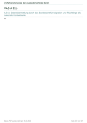 Verfahrenshinweise der Ausländerbehörde Berlin VAB A 91b A.91b. Datenübermittlung durch das Bundesamt für Migration und Flüchtlinge als nationale Kontaktstelle frei Dieses PDF wurde erstellt am: 05.01.2016 Seite 423 von 727