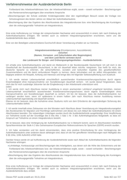 Verfahrenshinweise der Ausländerbehörde Berlin des Rentenversicherungsträgers über die erworbenen Ansprüche Bescheinigungen der Schule und/oder Kindertagesstätte über den regelmäßigen Besuch sowie die Vorlage von Schulzeugnissen des letzten Jahres vor Ablauf der Aufenthaltserlaubnis Bescheinigung über das Ergebnis des Abschlusstests des Integrationskurses bzw. eine Bescheinigung des Kursträgers über die ordnungsgemäße Teilnahme am Integrationskurs. Eine erste Aufforderung zur Vorlage der entsprechenden Nachweise wird voraussichtlich in einem Jahr nach Erteilung der Aufenthaltserlaubnis erfolgen. Wir werden auch zu weiteren Integrationsgesprächen erscheinen, wenn uns die Ausländerbehörde dazu einlädt. Eine von den Beteiligten unterschriebene Durchschrift dieser Vereinbarung erhalten wir zur Kenntnis. ……………………………… ……………………………………… gebilligt und Kenntnis genommen verlesen und erläutert 104a.s.3. Statistik Monatlich statistisch zu erfassen sind auch nach dem 31.12.2009 und bis zur abschließenden Bearbeitung aller vor dem 01.01.2010 gestellten Anträge auf Ersterteilung a. die Zahl der Anträge auf Ersterteilung: b. die Zahl der Ablehnungen der AE, insg.: wg. Passpflicht: wg. mangelnder Duldung bzw. Ausreisepflicht zum 01.07.2007: wg. wirtschaftl. Gründe: wg. Täuschung, vorsätzlichem Hinauszögern der Ausreise: wg. Ausweisungsgründen u.ä. Weiter sind ab 01.01.2010 nach einer bundeseinheitlichen Vorgabe monatlich statistisch zu erfassen die Zahl der Verlängerungsanträge, die Anzahl der Verlängerungen (Gesamt sowie nach Rechtsgrundlagen bzw. Fallkategorien des IMK- Beschlusses vom 3./4.12.2010) die Zahl der Ablehnungen (Gesamt sowie gesondert die, bei denen kein hinreichendes Bemühen zur Lebensunterhaltssicherung nachgewiesen wurde, oder es an den allgemeinen Erteilungsvoraussetzungen des § 104 a Abs. 1 S. 1 Nr. 1 -6, Abs. 3 fehlte die Zahl der sonstigen Erledigungen. Dieses PDF wurde erstellt am: 05.01.2016 Seite 464 von 727
