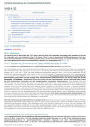 Verfahrenshinweise der Ausländerbehörde Berlin VAB A 32 Inhaltsverzeichnis A.32. Kindernachzug ............................................................................................................................... 255 32.0.1. Allgemeines ........................................................................................................................... 255 32.0.2. Nachweis der Personensorge bzw. Vaterschaftsanerkennungen im Inland ....................... 255 Sorgerechtsübertragung durch ausländische Gerichtsentscheidung ......................................... 255 Aufenthaltsrecht eines Elternteils nach § 28 Abs. 1 Nr. oder Nr. 3 ........................................ 256 Maßgeblicher Zeitpunkt für Feststellung der Minderjährigkeit ................................................... 256 Aufnahme eines Kindes zu Adoptionsbewerbern ...................................................................... 257 32.1. Grundsätzliche Anmerkungen ................................................................................................ 258 Kindernachzug unter 16 Jahren ................................................................................................. 258 32.2. Sprachkenntnisse .................................................................................................................... 258 32.3. KIndernachzug bei gemeinsamen Sorgerecht und einem im Ausland aufhältlichen Elternteil ...... 258 32.4. Kindernachzug im Ermessen .................................................................................................... 259 A.32. Kindernachzug ( NeubestG; 16.02.2016 ) 32.0.1. Allgemeines Der Nachzug setzt in allen Fällen des § 32 voraus, dass das Kind nicht verheiratet, geschieden oder verwitwet ist und das 18. Lebensjahr noch nicht vollendet hat (vgl. § 80 Absatz 3 Satz 1; hiervon abweichende Volljährigkeitsgrenzen nach dem Recht der Herkunftsstaaten sind unerheblich). Darüber hinaus kommt ein Kindernachzug nur nach § 36 Absatz 2 in Fällen einer außergewöhnlichen Härte im Ermessenswege in Betracht (zur Geltungsdauer vgl. A.7.2.3.1.). 32.0. 2. Nachweis der Personensorge bzw. Vaterschaftsanerkennungen im Inland Für den Nachweis der Personensorge bzw. Vaterschaftsanerkennungen im Inland gilt folgendes: Bei nicht-ehelichen Kindern kann die Vaterschaft durch öffentliche Beurkundung sowohl durch den Notar, das Amtsgericht, den Standesbeamten, das Jugendamt als auch durch das Gericht, bei dem die Vaterschaftsanerkennung anhängig ist, erfolgen (so § 1597 Abs. 1 BGB, der jede öffentliche Beurkundung genügen lässt). Zwar ist die Vaterschaft mit der öffentlichen Beurkundung gültig, ohne dass es auf die Beischreibung im Geburtenbuch durch den Standesbeamten ankommt (§ 1597 Abs. 2 BGB hat keinen Einfluss auf die Gültigkeit). Grundsätzlich istzum Nachweis der Vaterschaft die Beischreibung abzuwarten und die Vorlage einer entsprechenden Geburtsurkunde, aus der der Vater des Kindes hervorgeht, zu verlangen . Ausreichend ist auch ein Auszug aus dem Geburtenregister, der die Vaterschaft belegt, soweit die dort verzeichneten Personalien mit den nachgewiesenen Personalien übereinstimmen. Dies deshalb, weil eine Anerkennung erst dann wirksam wird, wenn auch die Mutter des Kindes oder - wenn dieser die elterliche Sorge insoweit nicht zusteht - auch das Kind der Anerkennung zugestimmt haben (vgl. § 1595 BGB). Außerdem ist die Anerkennung nur wirksam, wenn nicht die Vaterschaft eines anderen Mannes besteht (§ 1594 BGB) und kann – etwa bei fehlender Zustimmung der Mutter - auch widerrufen werden (§ 1597 Abs. 3 BGB). Der Standesbeamte prüft vor der Beischreibung des Anerkenntnisvaters auch, ob die Mutter zum Zeitpunkt der Geburt mit einem anderen Mann verheiratet war, der dann als der Vater gilt. Dies kann von der Ausländerbehörde nicht rechtsverbindlich geprüft werden. Legt ein Betroffener nicht innerhalb von sechs Monaten nach der Geburt des Kindes die Geburtsurkunde bzw. keinen Auszug aus dem Geburtenregister und auch keinen Zwischenbescheid des Standesamtes vor oder weigert er sich, eine Geburtsurkunde beizubringen, so ist über den Antrag auf den Aufenthaltstitel nach Aktenlage zu entscheiden . Steht die Anerkennung der Vaterschaft fest, so genügen für den Nachweis der gemeinsamen Sorge der Eltern die öffentlich beurkundeten Erklärungen beider Eltern (vgl. hierzu § 1626 a sowie § 1626 d Abs. 1 BGB, der wiederum jede Form einer öffentlichen Beurkundung zulässt). Einer Bestätigung durch eine öffentliche Stelle bedarf es nicht. Dies auch deshalb, weil das Jugendamt lediglich verpflichtet ist, der allein sorgeberechtigten Mutter durch ein sogenanntes Negativattest zu bescheinigen, dass keine gemeinsamen Sorgeerklärungen abgegeben wurden. Die Ausstellung einer Bescheinigung durch das Jugendamt im Falle der gemeinsamen Sorge sieht das Gesetz nicht vor. Sorgerechtsübertragung durch ausländische Gerichtsentscheidung Ist das Sorgerecht durch eine ausländische Gerichtsentscheidung auf einen Elternteil übertragen worden und kommt es nach § 32 Abs. 1 oder Abs. 2 auf das alleinige Sorgerecht dieses Elternteils an, so gilt für die Anerkennung dieser Sorgerechtsentscheidung im aufenthaltsrechtlichen Verfahren folgender von dem Oberverwaltungsgericht Berlin-Brandenburg in seinem Urteil - 12 B 21.09 - vom 29.09.2010 und dem BVerwG in seiner Entscheidung 10 C 11/12 Dieses PDF wurde erstellt am: 05.08.2016 Seite 255 von 750