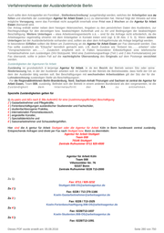 Verfahrenshinweise der Ausländerbehörde Berlin Auch sollte dem Antragsteller ein Formblatt „ Stellenbeschreibung“ ausgehändigt werden, welches der Arbeitgeber aus zu füllen und ebenfalls der zuständigen Agentur für Arbeit Essen (s.o.) zu übersenden hat. Hierauf folgt der Hinweis auf eine mögliche Versagung, wenn das Formblatt nicht ausgefüllt innerhalb einer Frist von 2 Wochen an die Agentur für Arbeit Essen übersandt wird. Der Antrag enthält weiter neben dem hiesigen Aktenzeichen, Angaben zu den persönlichen Daten des Ausländers, zur Rechtsgrundlage für den derzeitigen bzw. beabsichtigten Aufenthalt und zu Art und Bedingungen der beabsichtigten Beschäftigung. Weitere Unterlagen – etwa Arbeitsvertragsentwürfe o.ä. – sind für die Anfrage nicht erforderlich, da die Arbeitsagentur regelmäßig ohnehin mit dem Arbeitgeber in Kontakt treten wird (vgl. § 39 Abs. 2 S. 3). Wenn weitere Unterlagen bei der Ausländerbehörde vorhanden sind, sollten sie aber dem Anfrageformular als Anlage beigefügt werden. In besonderen Eilfällen sollten die Bitten um Zustimmung an die Agentur für Arbeit Essen per Fax übersandt werden. Das Fax sollte zusätzlich als "Eilsache" kenntlich gemacht sein, z.B. durch Zusätze wie "Antwort bis……..erbeten" oder "Vorsprachetermin am…….". Zusätzlich empfiehlt sich in Fällen besonderer Eilbedürftigkeit eine telefonische Kontaktaufnahme zum zuständigen ZAV-Stützpunkt. Wird eine Zustimmungsanfrage (Teil 1 und 2 des Formularsatzes) per Fax übersandt, sollte in jedem Fall auf die nachträgliche Übersendung des Originals auf dem Postwege verzichtet werden. Zuständigkeiten der Agenturen für Arbeit Zuständig ist grundsätzlich d ierjenige Agentur für Arbeit, in de ren Bezirk der Betrieb seinen Sitz oder seine Niederlassung hat, in der der Ausländer arbeiten soll. Im Zweifel ist der Betrieb die Betriebsstätte, dass heißt der Ort an dem der Ausländer tätig werden soll. Bei Beschäftigungen mit wechselnden Arbeitsstätten gilt der Sitz der für die Lohnabrechnung zuständigen Stelle als Beschäftigungsort . Für die Regionaldirektionen Berlin-Brandenburg, Nord, Sachsen-Anhalt-Thürungen und Sachsen ist zentral die Agentur für Arbeit Essen, Team 009, zuständig. Befindet sich der Betrieb in einem anderen Bundesland als den vorgenannten, ist die Zuständigkeit dem Internetauftritt der BA zu entnehmen. Spezielle Zuständigkeiten gelten für 1) Au-pairs und AEs nach § 38a AufenthG für eine (zustimmungspflichtige) Beschäftigung 2 ) Gastarbeitnehmer und Pflegekräfte, 3 ) Ferienbeschäftigungen ausländischer Studierender und Fachschüler, 4 ) studienfachbezogene Praktika, 5 ) internationalen Personalaustausch, 6 ) angestellte Künstler, 7 ) Spezialitätenköche und 8 ) Saisonarbeitnehmer und Schaustellergehilfen. Hier sind die A gentur für Arbeit Stuttgart oder die Agentur für Arbeit Köln in Bonn bundesweit zentral zuständig. Entsprechende Anfragen sind direkt per Fax nach Stuttgart bzw. Bonn zu übermitteln: Agentur für Arbeit Stuttgart Team 008 70145 Stuttgart Zentrale Rufnummer 0711 920-4500 Agentur für Arbeit Köln Team 008 Villemombler Str. 76 53107 Bonn Zentrale Rufnummer 0228 713-2000 Zu 1): Fax: 0711 / 920-3232 Stuttgart.008-OS@arbeitsagentur.de Zu 2 ): Fax: 0228 / 713 270-1166 Koeln-Gastarbeitnehmer@arbeitsagentur.de Zu 3 ): Fax: 0228 / 713-1525 Koeln-Ferienbeschaeftigung.008-OS@arbeitsagentur.de Zu 4 ): Fax: 0228/713-1037 Koeln-Studenten.008-OS@arbeitsagentur.de Zu 5 ): Fax: 0228/713-1091 Dieses PDF wurde erstellt am: 05.08.2016 Seite 280 von 750